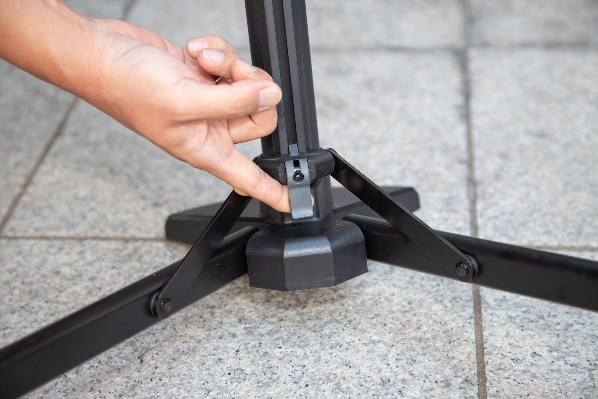 2개의 홀더는 높낮이를 조절할 수 있고 최대 하중이 30kg이라서 무거운 전기자전거까지 거치할 수 있다. 스탠드를 지탱하는 2개의 다리는 튼튼한 편이어서 공기를 주입하는 동안 자전거를 흔들림 없이 잡아줘서 매우 안정적이다. 평상시는 접어 보관할 수 있어서 공간 차지가 적다.