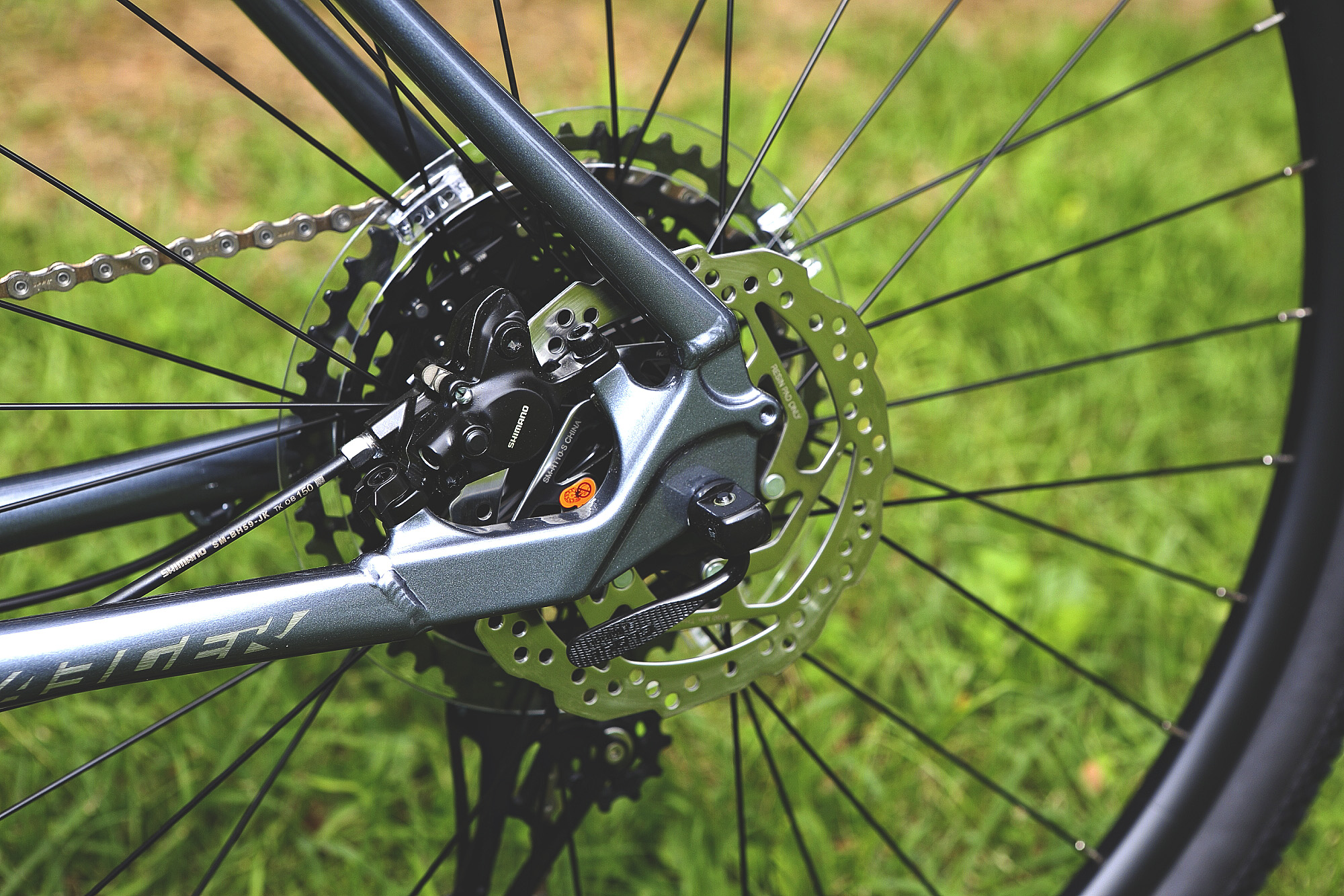 사이드스윙 방식의 앞 디레일러를 지원하며, QR 액슬이 사용된다.