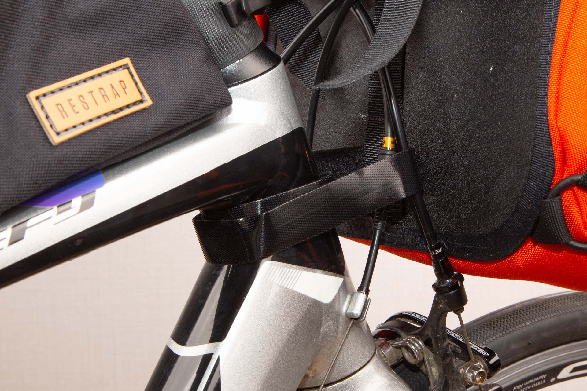 탑튜브백은 넓고 탄탄한 벨크로 스트랩을 이용해 고정한다.