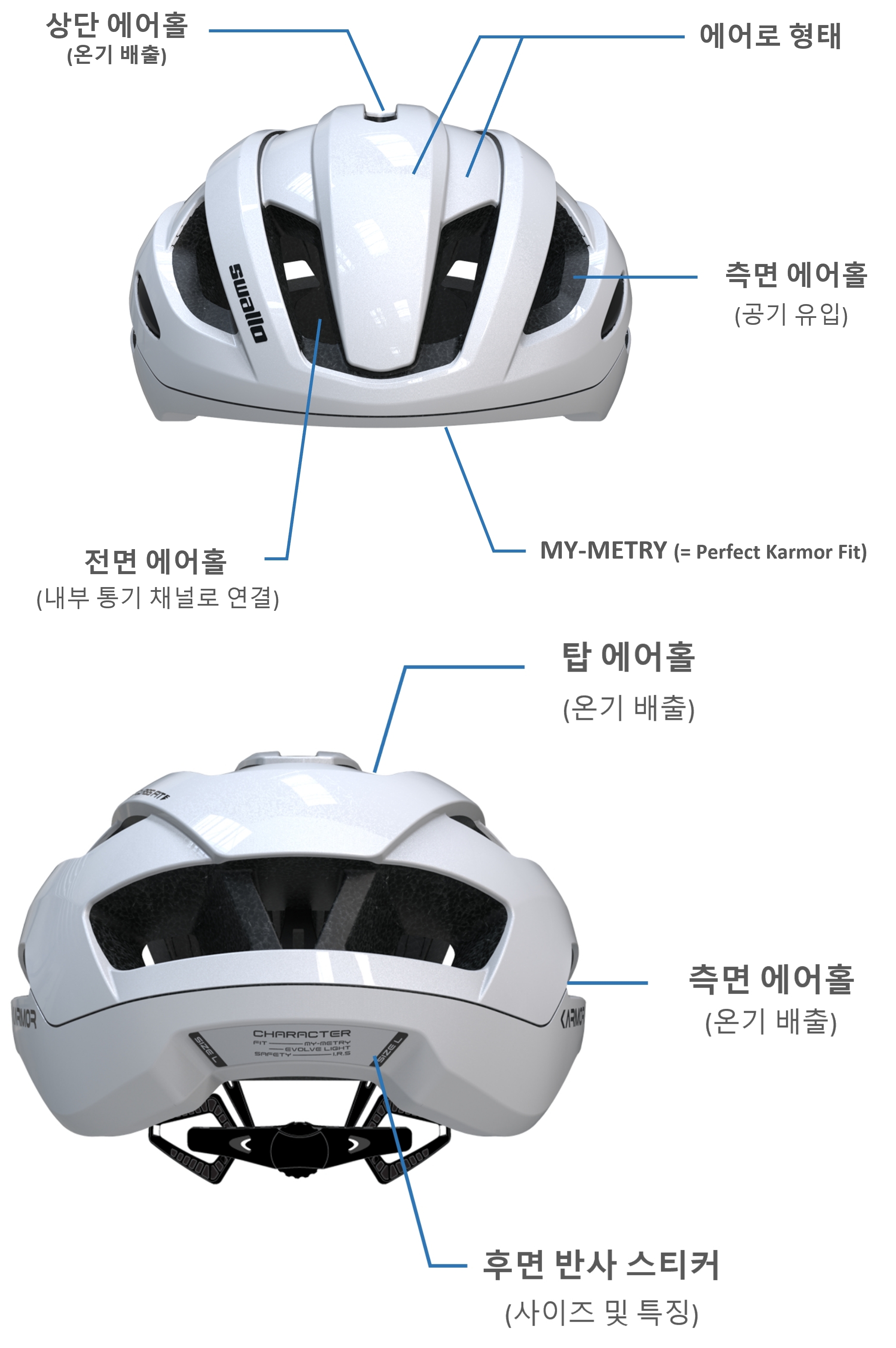 총 14개의 통풍구는 공기 흐름의 방향에 따라 크고 긴 형태로 되어 있고, 공기 순환이 원활하게 이루어질 수 있도록 전략적으로 배치되어 있어, 높은 통기성을 제공한다. 더욱이 헬멧 내부의 통기 채널을 통해 통기성을 보다 향상시켰다.