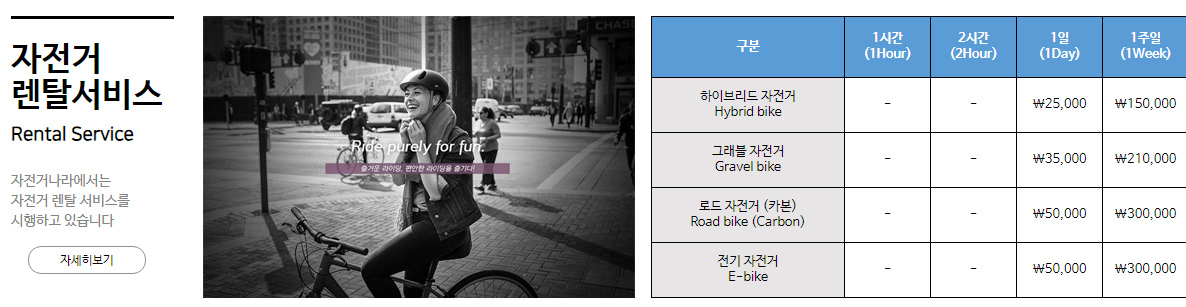 렌탈 서비스도 운영해, 자전거여행 및 고급 자전거 경험에 활용된다.