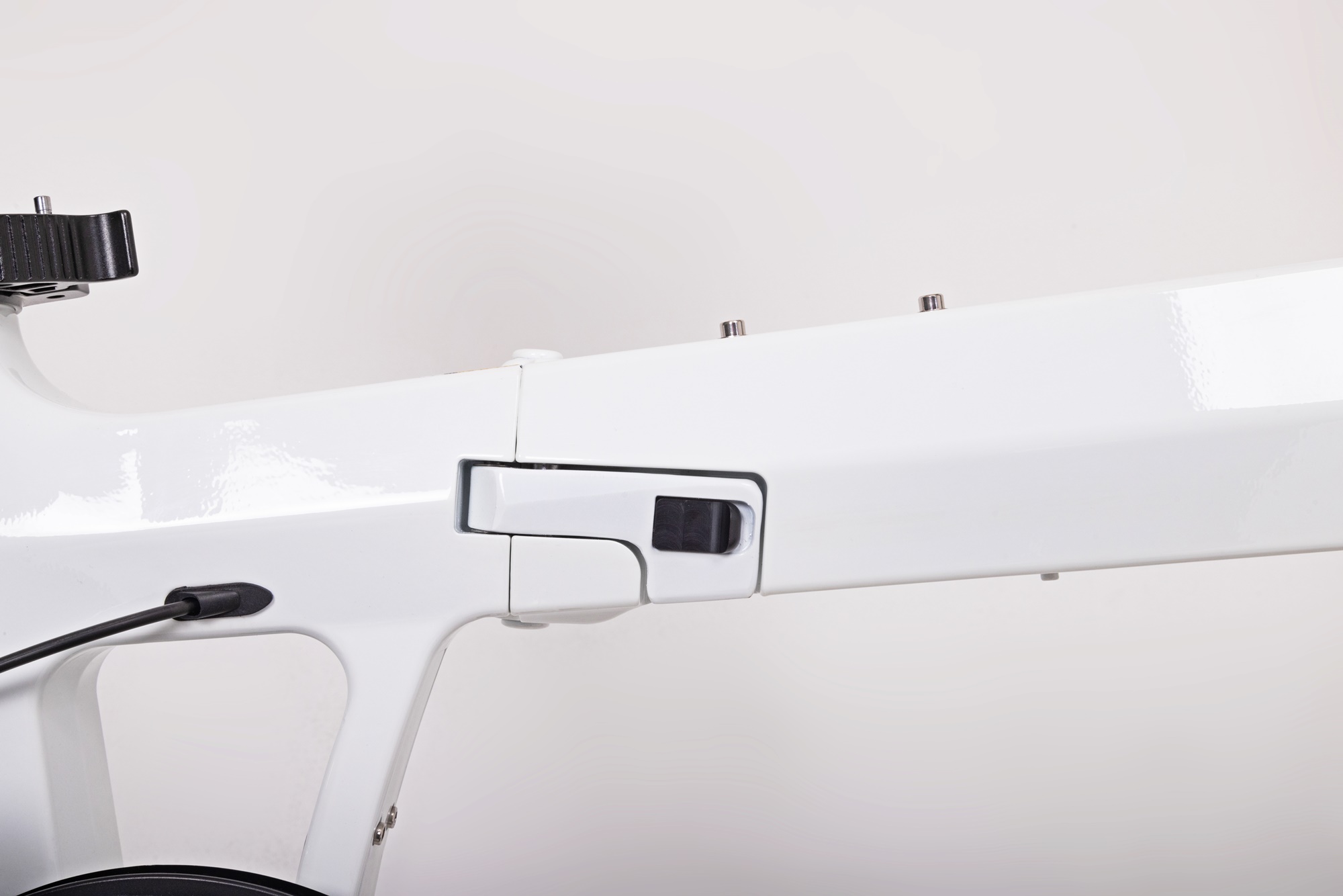 특히 메인 프레임의 힌지는 밖으로 돌출되지 않는 형태라는 게 특징이다. 이는 깔끔한 외형 뿐 아니라 라이딩 시 간섭이 적고 끌고 이동하거나 잠시 들어 올릴 때 불편함을 줄여준다. 접을 때는 힌지에 있는 슬라이딩 버튼을 밀어서 레버를 당기는 이중 잠금방식이다.