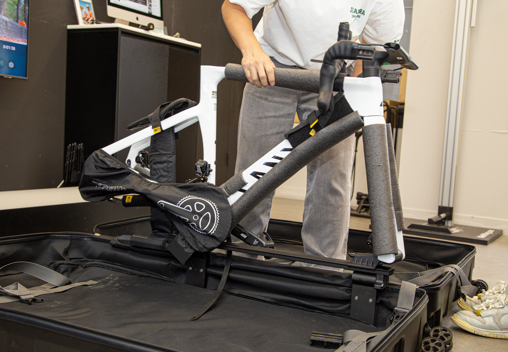 시트포스트는 분리하여 전용 포켓에 넣고, 체인스테이 사이에 끼워 고정한다. 분리된 휠은 전용 휠 백에 넣어 팩고 케이스의 양면을 채운다.