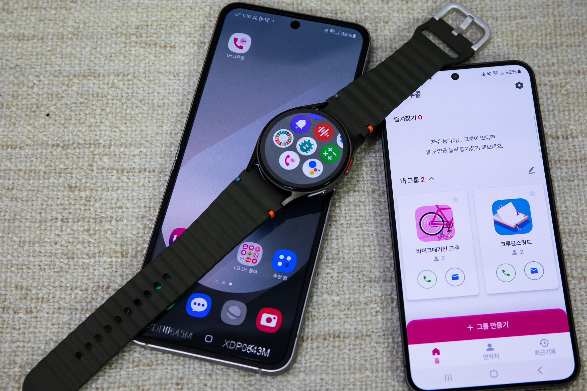 크루콜 서비스는 갤럭시 워치에 연동되어 그룹 통화를 워치에서 바로 할 수 있어서, 아웃도어 활동 중 스마트폰을 꺼내야 하는 번거로움을 줄일 수 있다.
