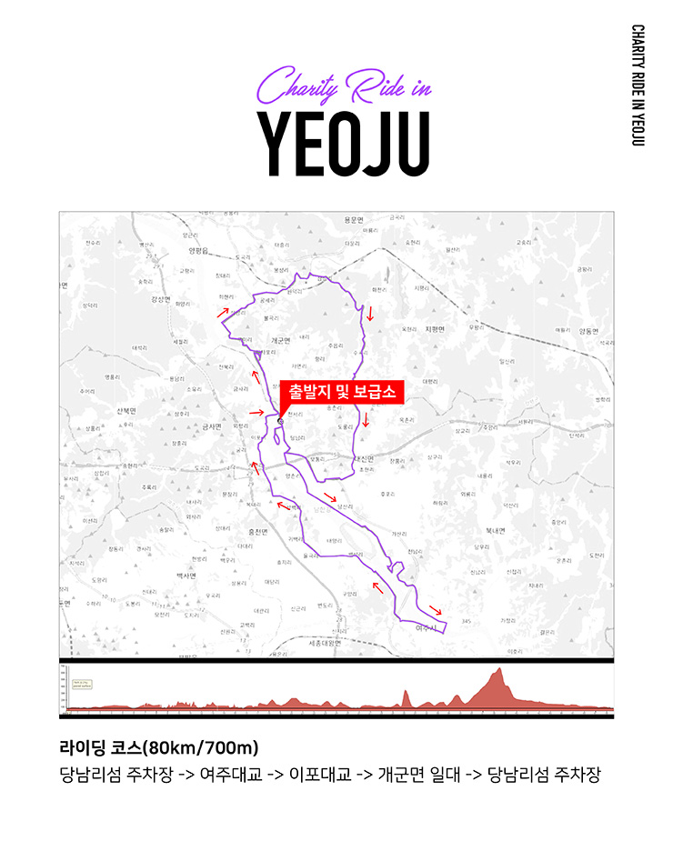 - 코스 : 당남리섬 - 여주대교 - 이포대교 - 개군면 일대 - 당남리섬 (약 80km)