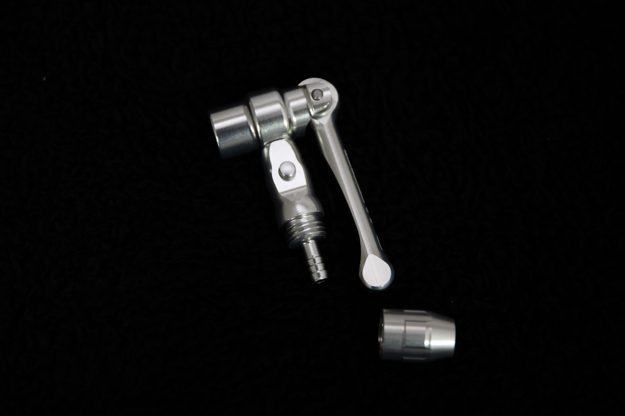기존 펌프 척은 밸브에 강하게 눌러 끼운 후 락 레버를 올려야 했다.