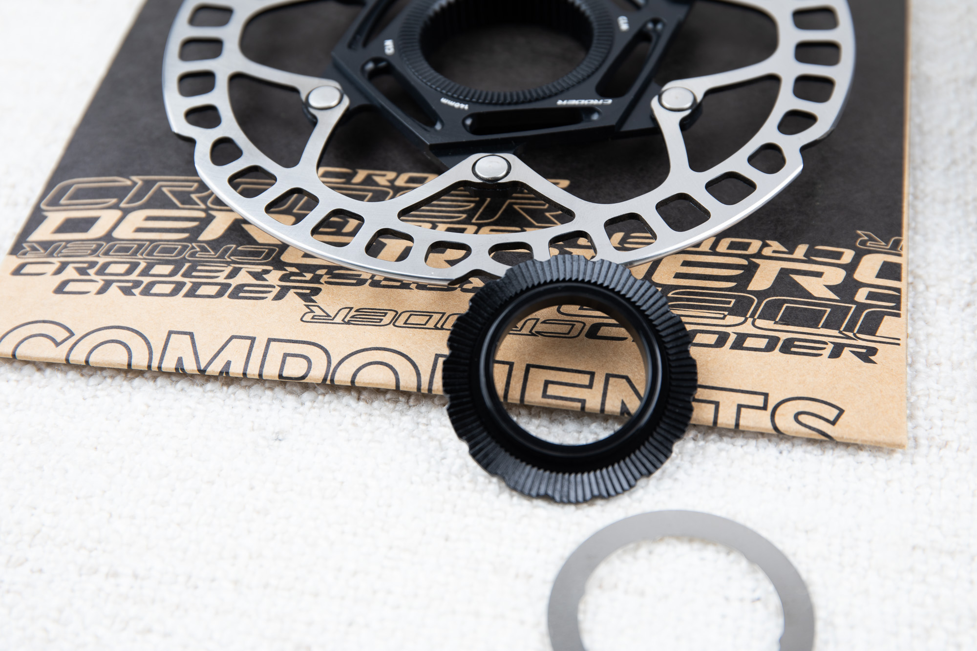 센터락 로터를 고정하기 위해서는 락링이 필요한데, 크로더는 로터 락링을 함께 출시했다. 크로더의 락링은 카세트 툴을 이용하는 시마노 락링과 달리, BB 툴의 일종인 16 노치(노치 안쪽 42.7mm) 공구를 이용해 조립하게 된다.