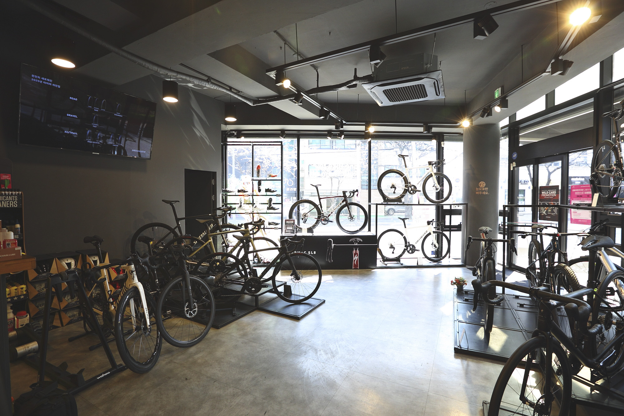스페셜라이즈드를 전문으로 취급하는 브랜드 매장이다. 신제품과 인기 제품을 모두 볼 수 있도록 진열해 두었으며 구매 후 간단하게 피팅을 할 수 있는 장비도 마련되어 있다.