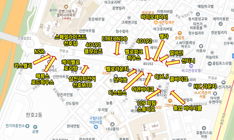 서울 강동구 천호동에는 일명 자전거 성지라 불리는 곳이 있는데, 그곳이 '천호자전거거리'다.