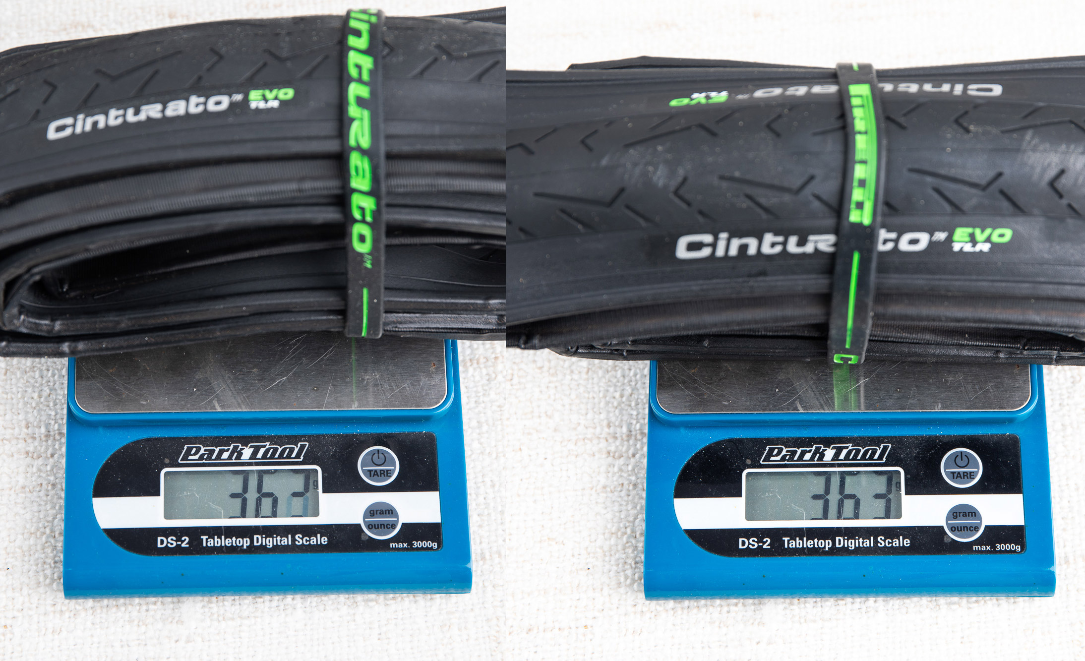 무게는 동급 타이어 중에서는 다소 무거운 편에 속하며, 이는 타이어의 강력한 내구성의 일부라고 볼 수 있다. 실측 무게는 28mm와 30mm가 동일한 수치로 나왔는데, 제공된 스펙보타 28mm가 조금 무거웠다.