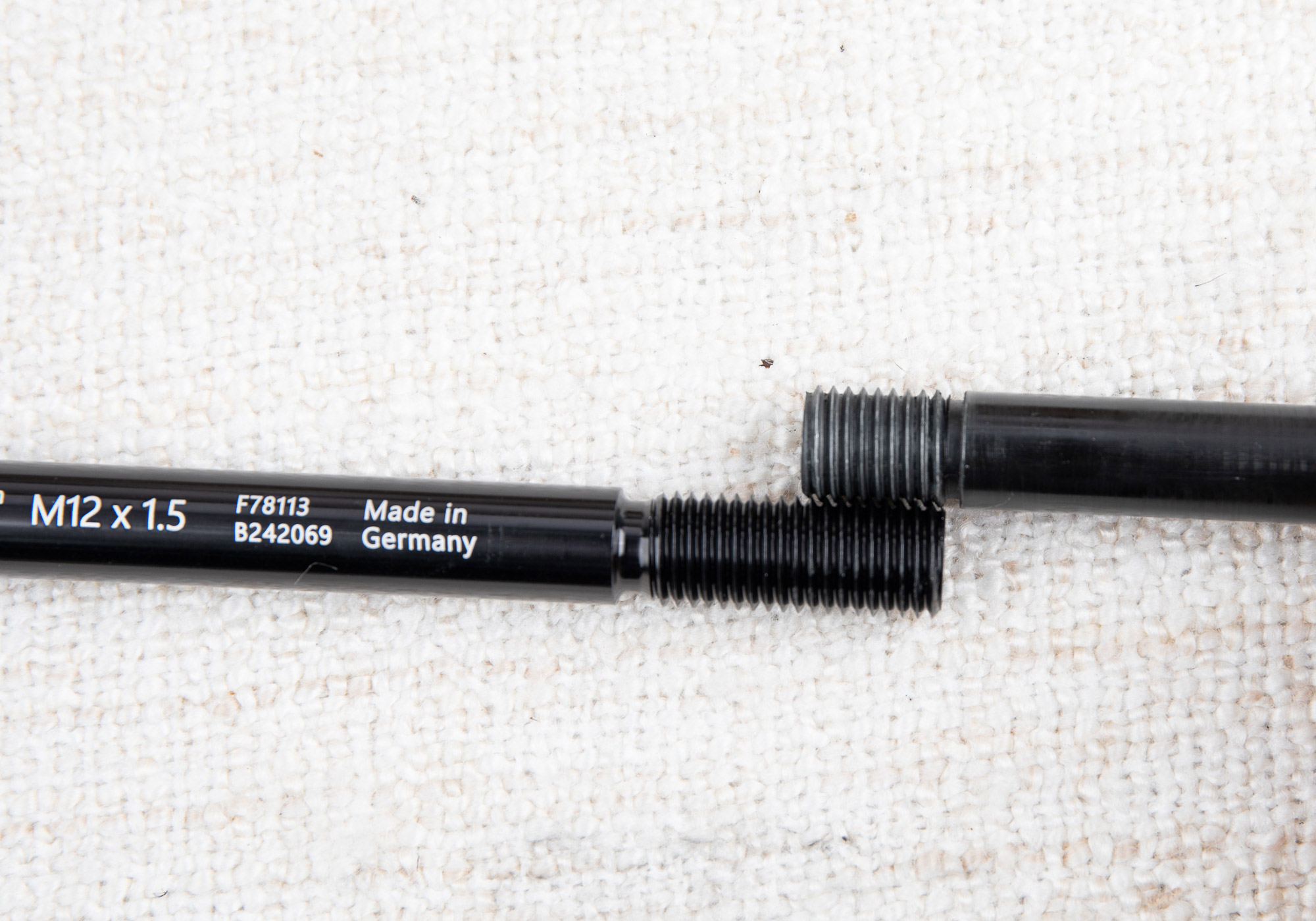 호환되는 옵션을 찾기 위해서는, 쓰루액슬 내부에 표기된 스펙을 확인하는 것이 가장 좋고, 표기가 없을 때는 나사산을 서로 맞대어 정확하게 맞는 제품으로 선택하면 된다.