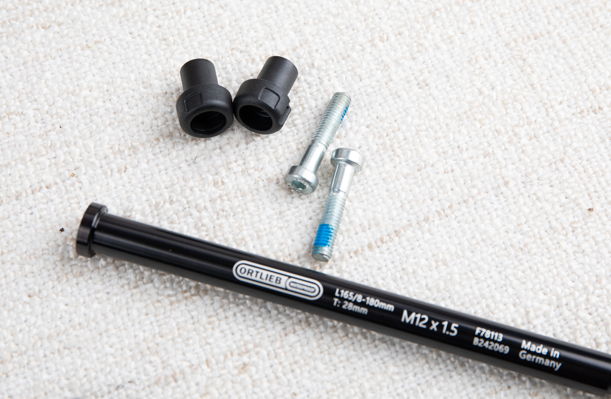 장착은, 기존 쓰루액슬을 제거하고 그 자리에 끼우면 되는데, 좌우에 바깥으로 튀어 나오는 액슬의 길이를 비슷하게 맞출 수 있도록 다양한 스페이서가 포함된다.