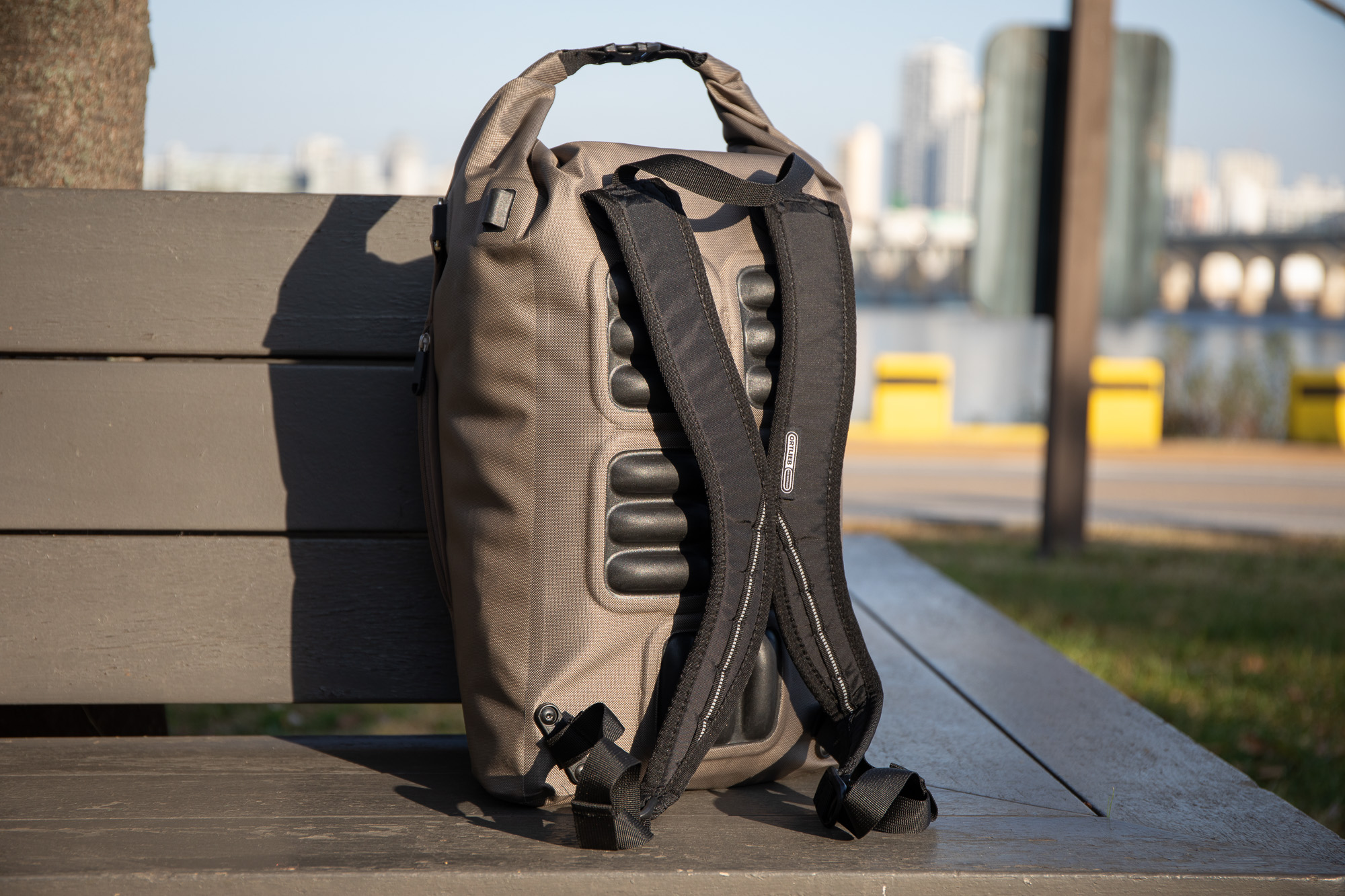 오르트립 제품의 가장 큰 특징 중에 하나인 '방수' 기능은 바리오 라이트 2.1 가방에도 당연히 적용된다. 롤업 방식의 개폐 시스템을 이용해 방수백 수준의 밀폐 기능을 지원하며, 고주파 접합을 통해 재봉선 없는 높은 방수 성능을 보여준다.