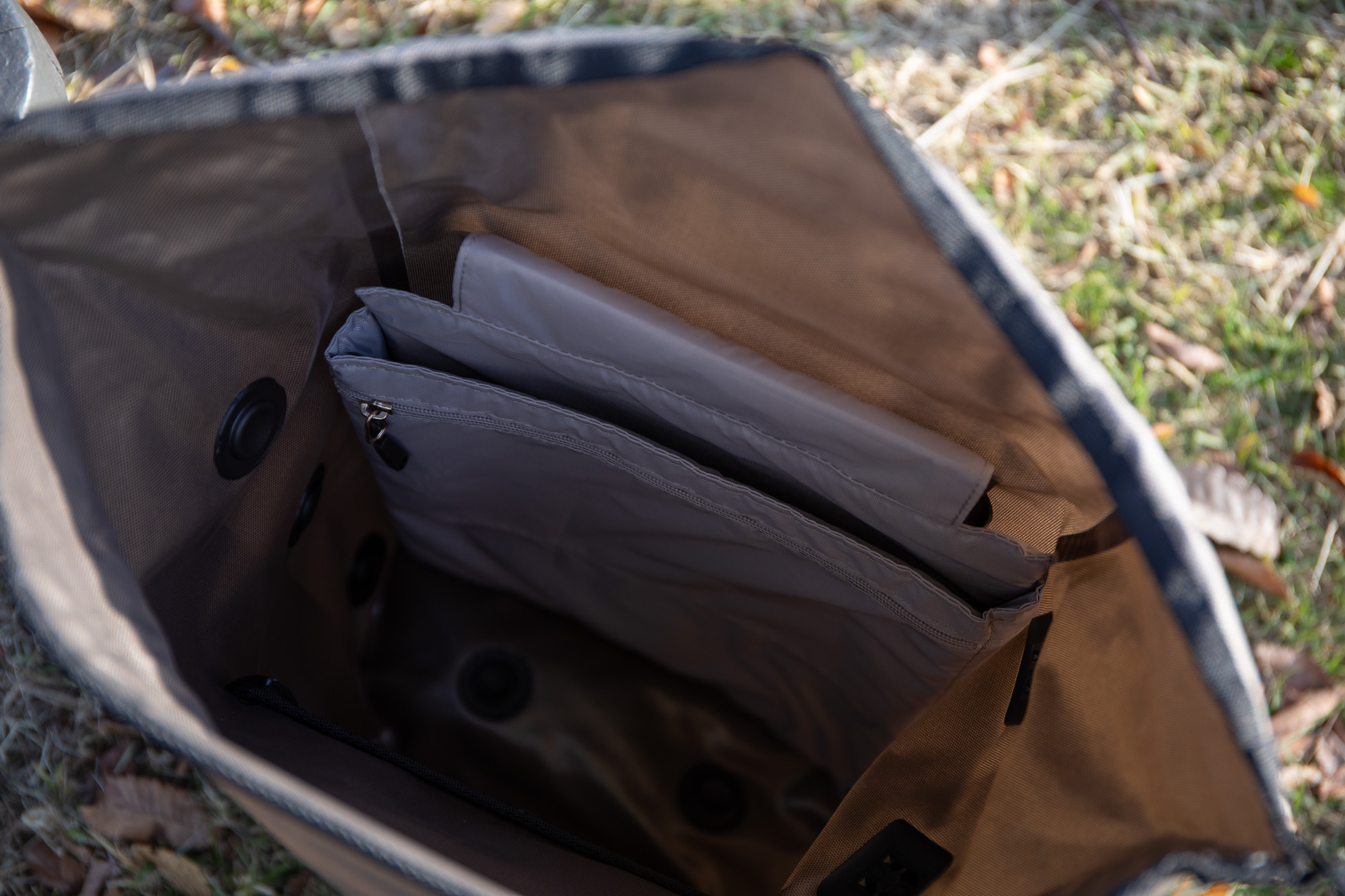 가방 내부에는 탈착이 가능한 노트북 포켓이 포함되어 있다. 꽤 두꺼운 쿠션이 제공되기 때문에, 노트북 컴퓨터나 패드를 넣고 라이딩을 해도 안전하게 보호될 수 있다.
