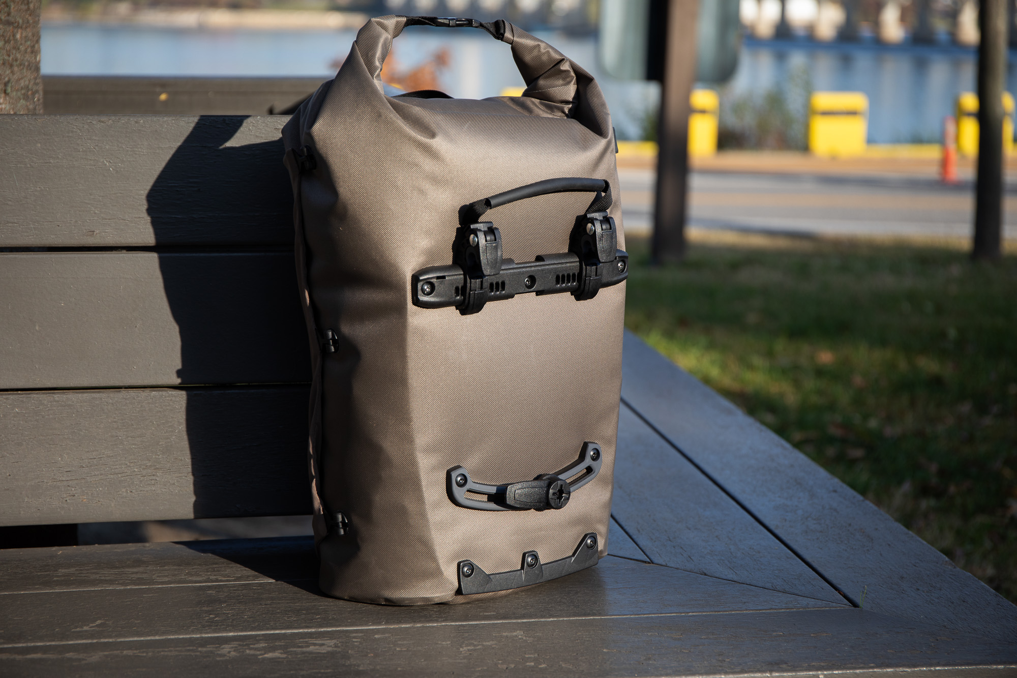 자전거 짐받이 랙에 쉽게 부착하여 사용할 수 있는 패니어 가방은 라이딩 중에 무척 편리하지만, 출퇴근과 같이 라이딩 후 가방을 가지고 걸어서 이동해야 하는 경우는 번거로운 것이 사실이다.