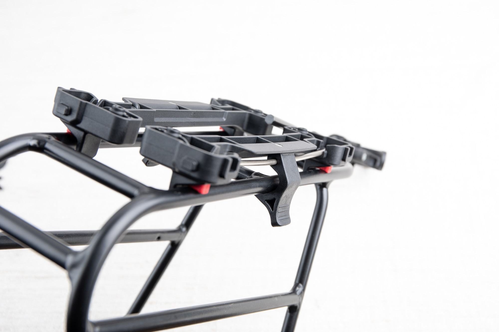 이와 같이 양쪽의 클립 시스템이 분리되어 있기 때문에, 최소 9cm에서 최대 40cm 폭까지 사용할 수 있는데, 이것은 앞 랙의 경우 넓게 제작되는 경우가 많기 때문이다.