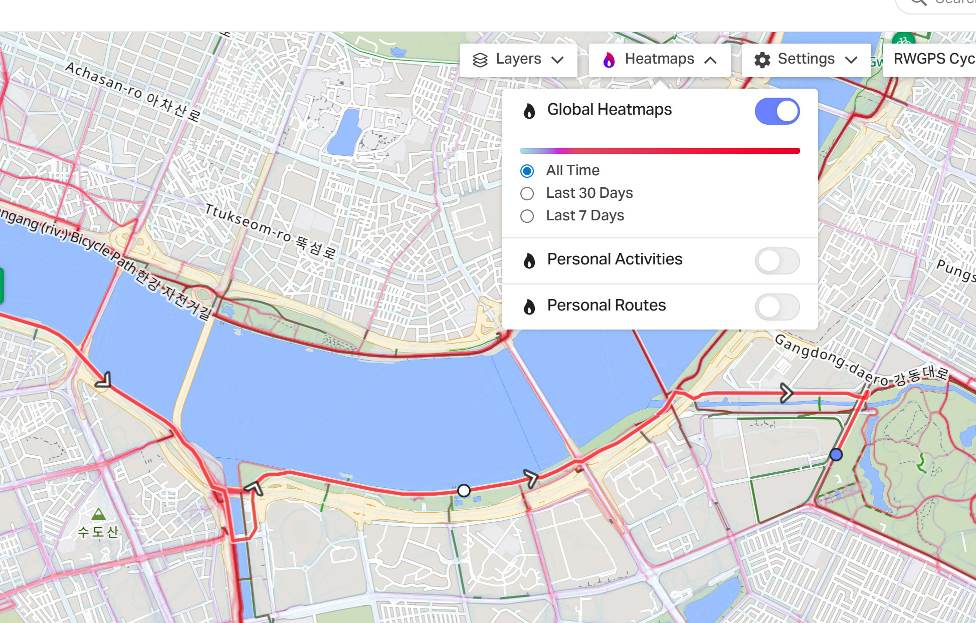 히트맵이 지원되기 때문에, 기존 라이더가 많이 이용한 경로를 쉽게 확인할 수 있다.