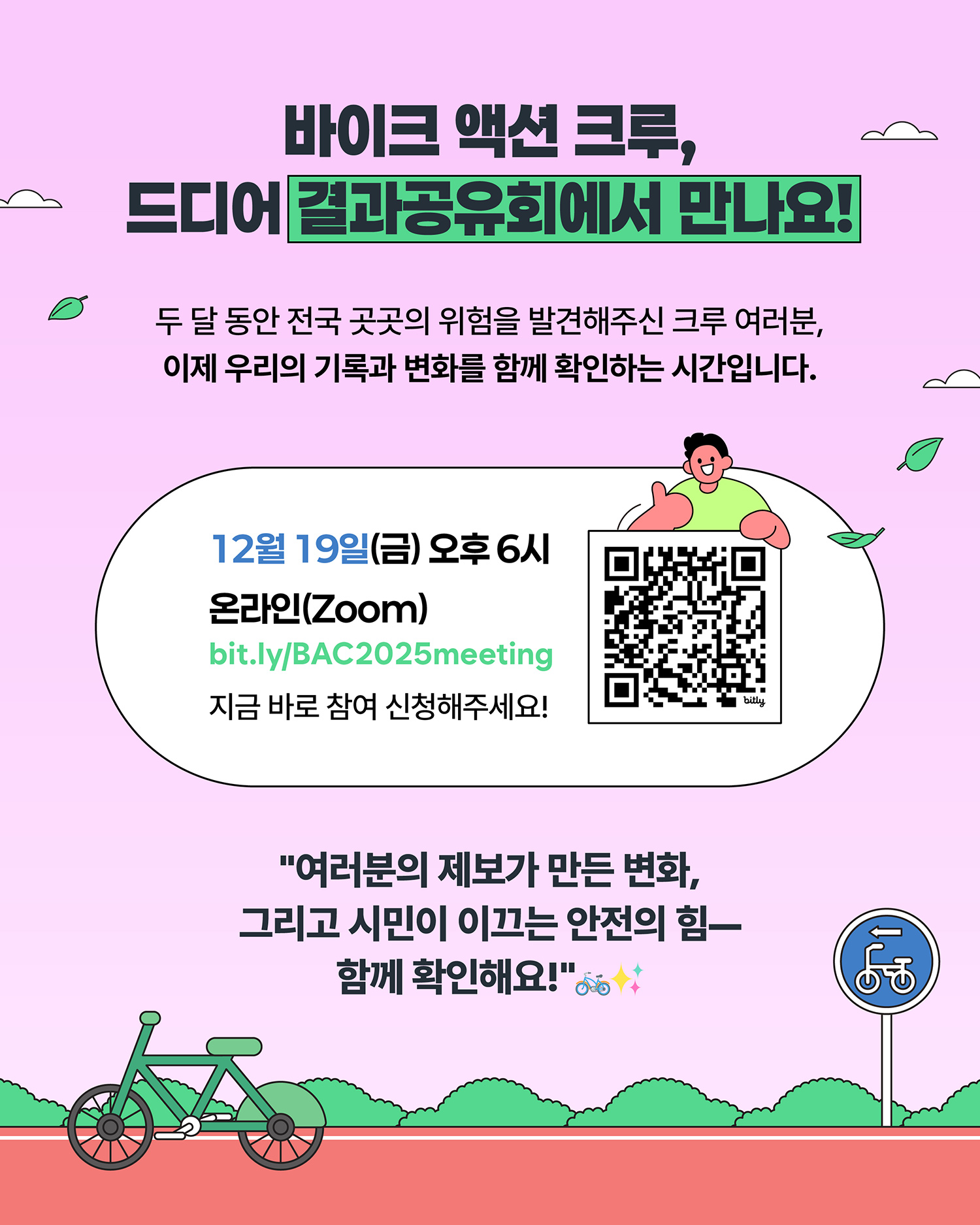 바이크액션크루는 그동안의 활동 내용과 성과, 그리고 자전거 도로 안전 개선을 위한 향후 계획을 공유하는 결과공유회를 개최한다.