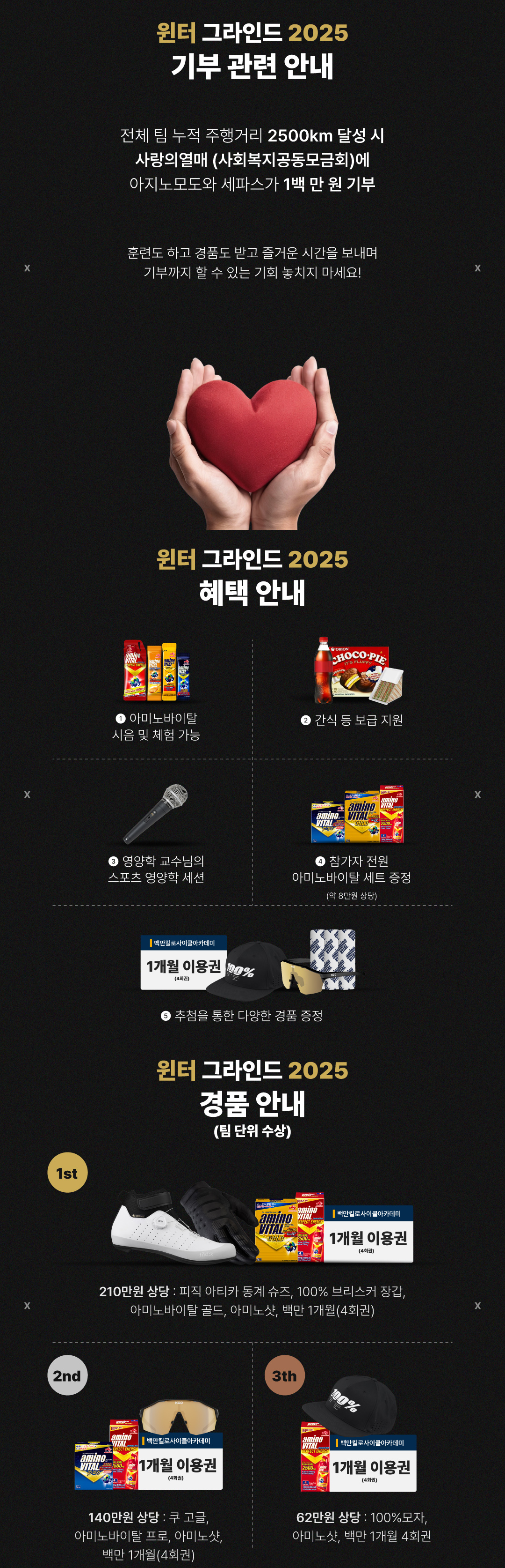 세파스가 아지노모토(아미노바이탈)와 손잡고 동계 시즌 라이더들을 위한 이색 인도어 사이클링 대회 'WINTER GRIND 2025(윈터 그라인드 2025)'를 개최한다.