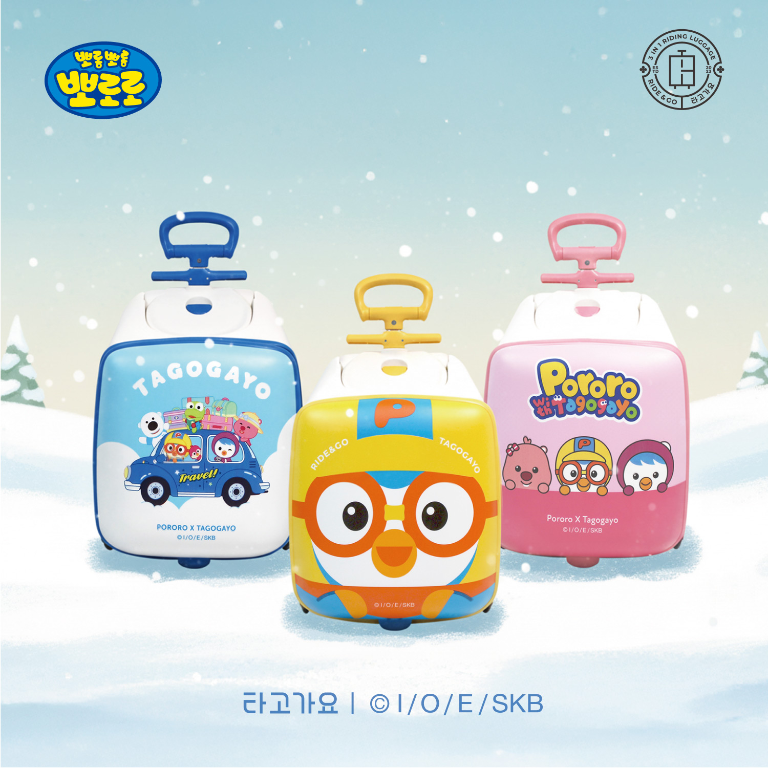 유아 탑승 캐리어 브랜드 '타고가요'는 어린이들에게 친숙한 '뽀로로'와 협업한 한정판 캐리어를 선보였다.