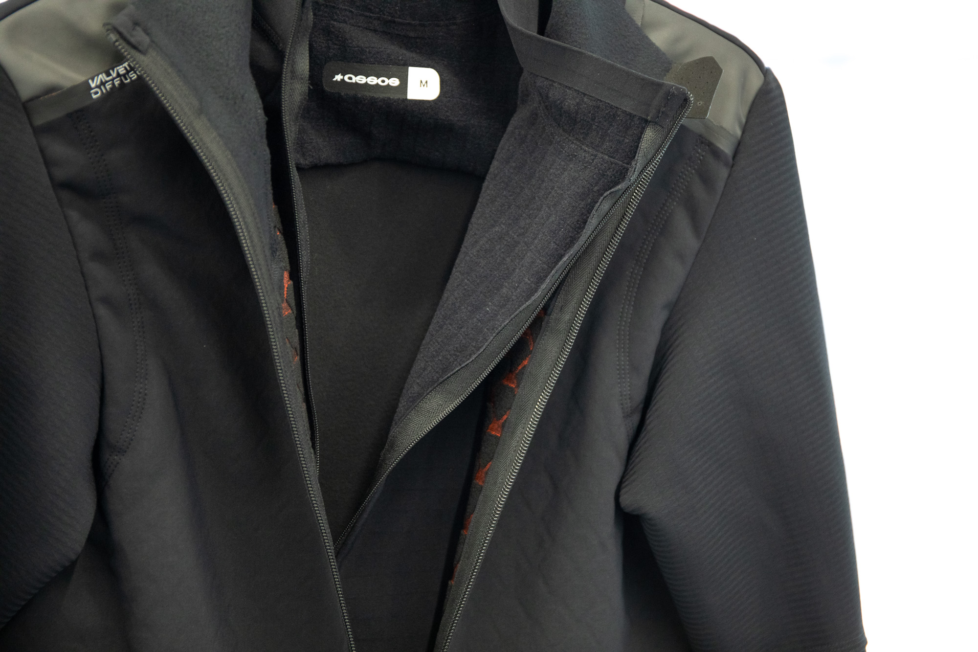 또, 다이아몬드 미디엄 소프트쉘은 아소스의 독자적인 2겹 구조의 원단인데, 전면과 상완 부분에 적용되었다. 기존 스피어 원단보다 신축성, 통기성, 방수/방풍 기능이 향상되어, 따뜻하면서도 답답하지 않다.