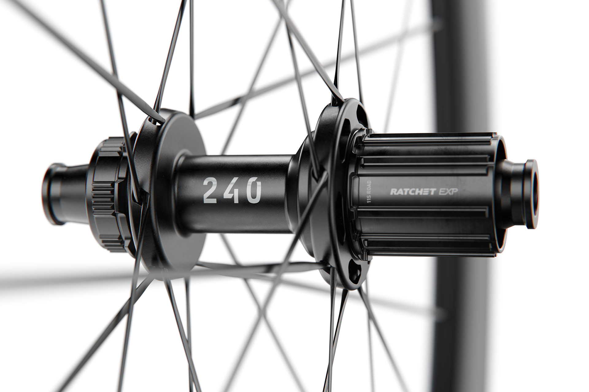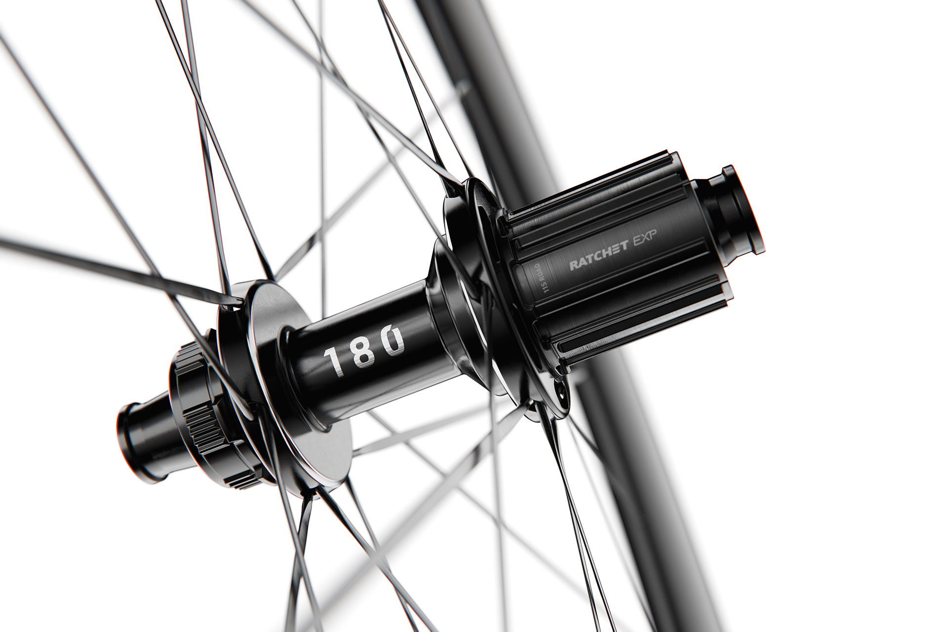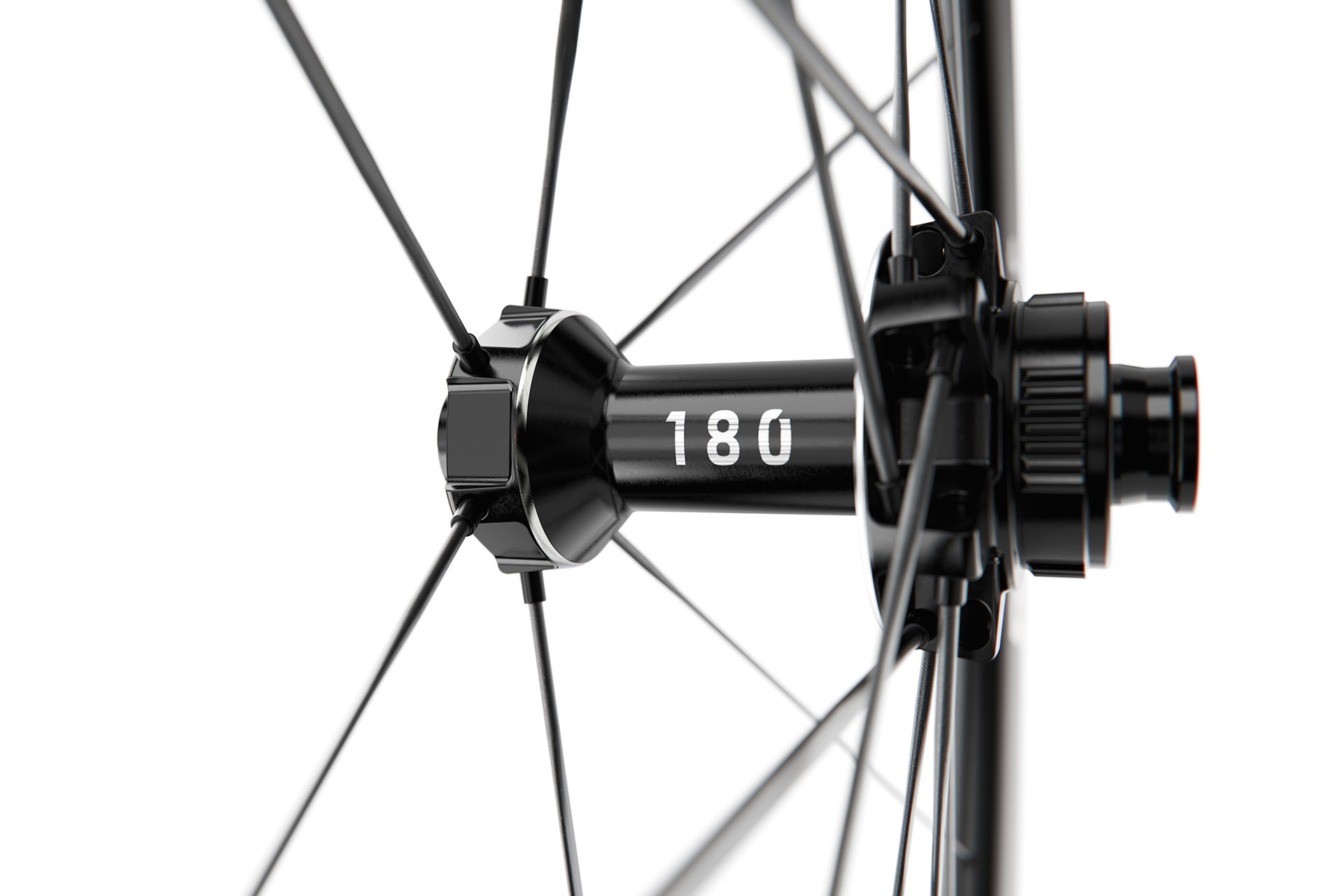 허브는 카본 스포크 사용을 위해 특별히 설계된 '180 스플라인(SPLINE)'이 적용되었다. 36T 라쳇 EXP 시스템을 기반으로 하며, 카본 스포크 구조에 맞춰 플랜지를 다듬고 스포크 패턴을 최적화했다.