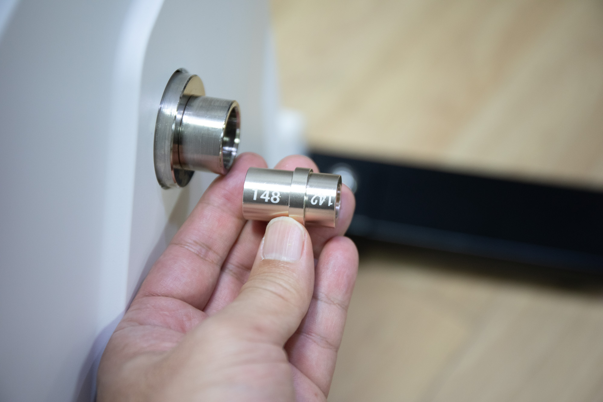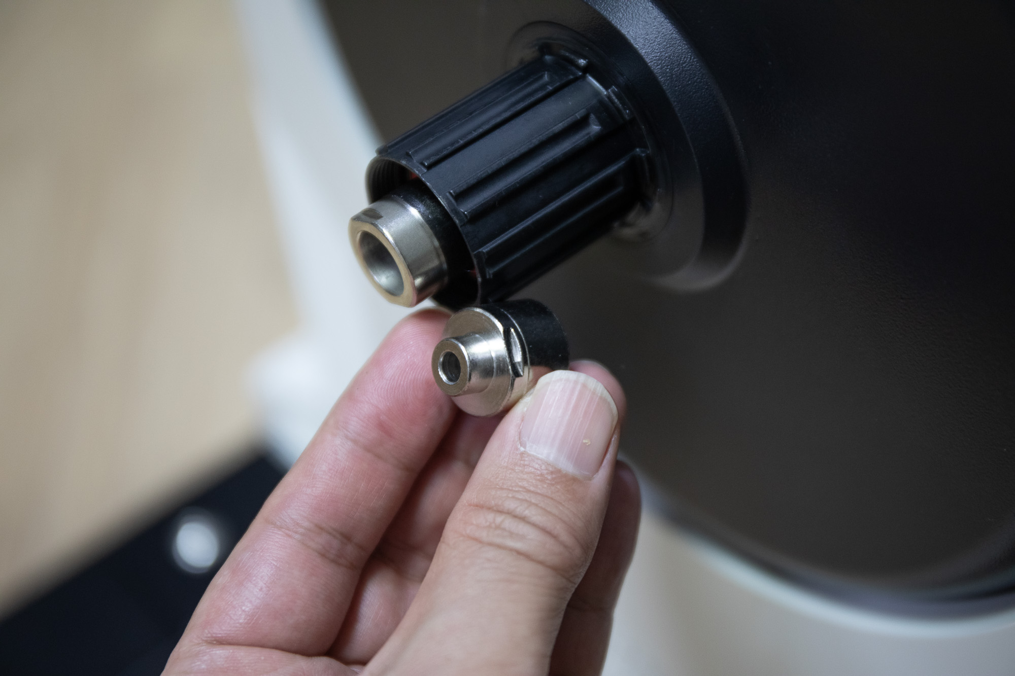 기본적으로 쓰루액슬 어댑터가 끼워져 있으며, 동봉된 툴을 이용해 교체할 수 있다.