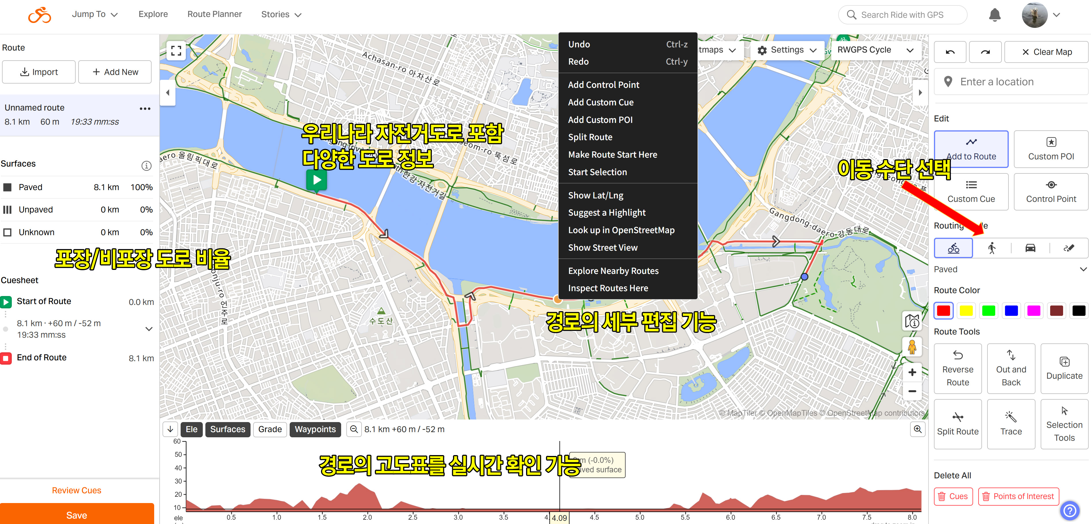 경로 설계를 위한 다양한 기능이 특징인 RWGPS