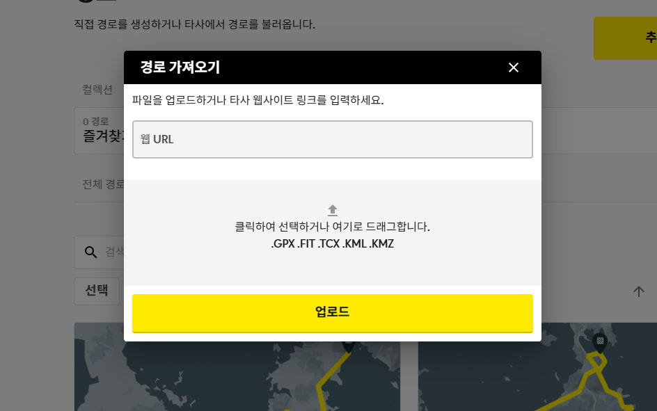 이 곳에 코스 파일을 올리고, [업로드] 버튼을 누르면 바로 코스가 등록된다.