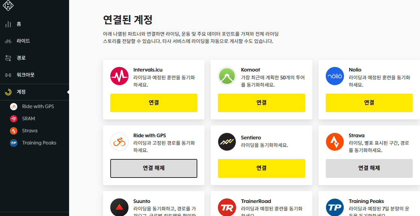어떻게 보면, 와후(WAHOO)와 연동되는 방식이 동일한 것처럼 보이지만, 와후의 경우는 RWGPS의 모든 자신의 코스 및 핀(pin)한 코스가 자동으로 싱크되어, 원하지 않는 코스가 디바이스로 업로드 되는 경우가 발생할 수 있다.