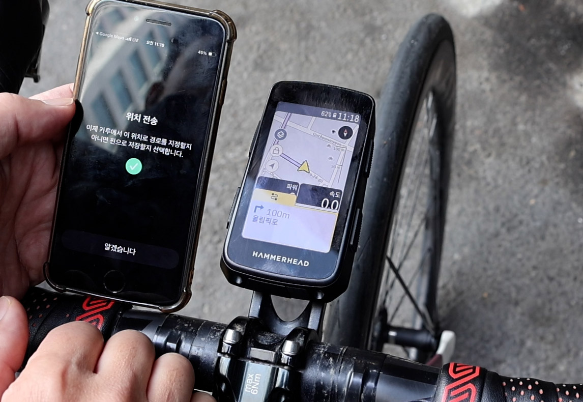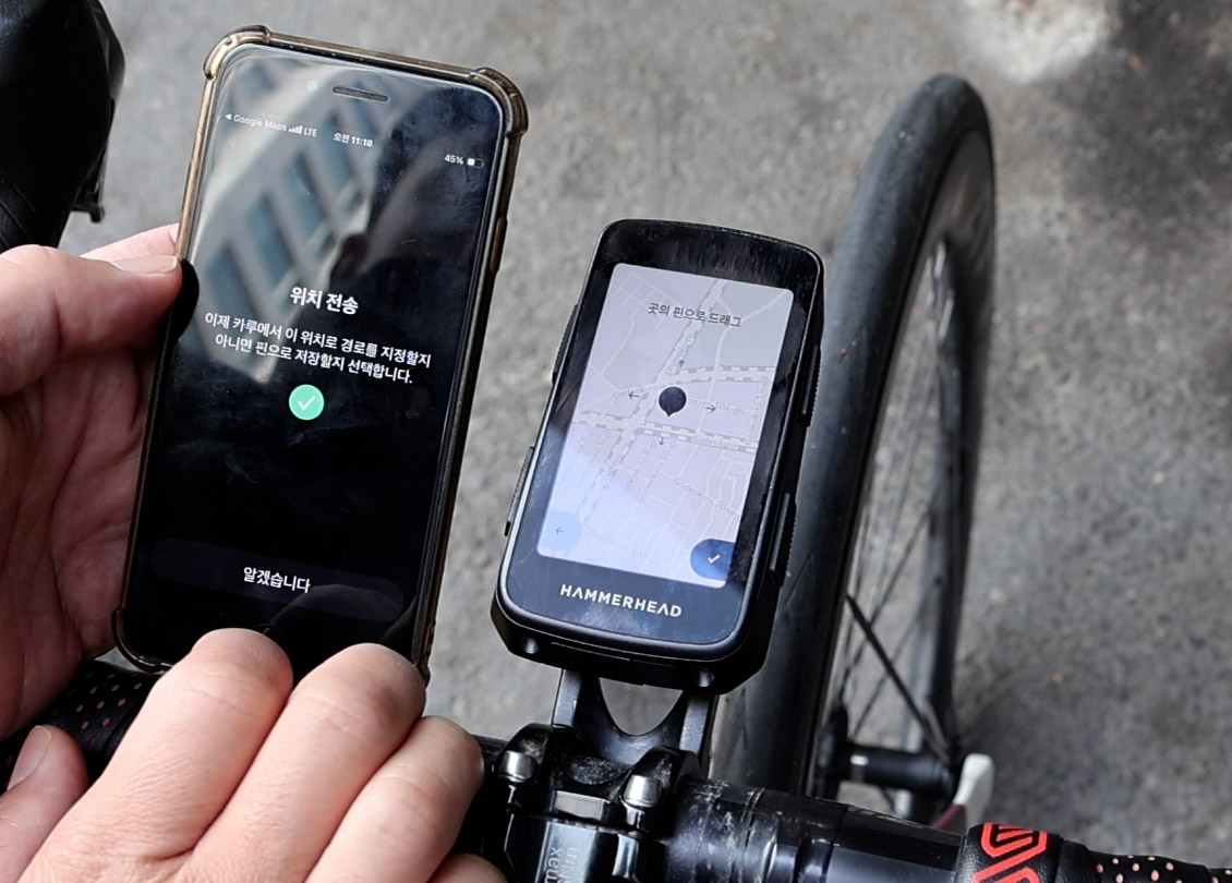자전거를 타면서 근처의 목적지를 가야 할 때, 휴대폰의 내비게이션을 열고 가려면 휴대폰 거치대가 필요하다. 하지만, 해머헤드 카루와 어플을 이용하면 쉽게 목적지 내비게이션이 가능하다.