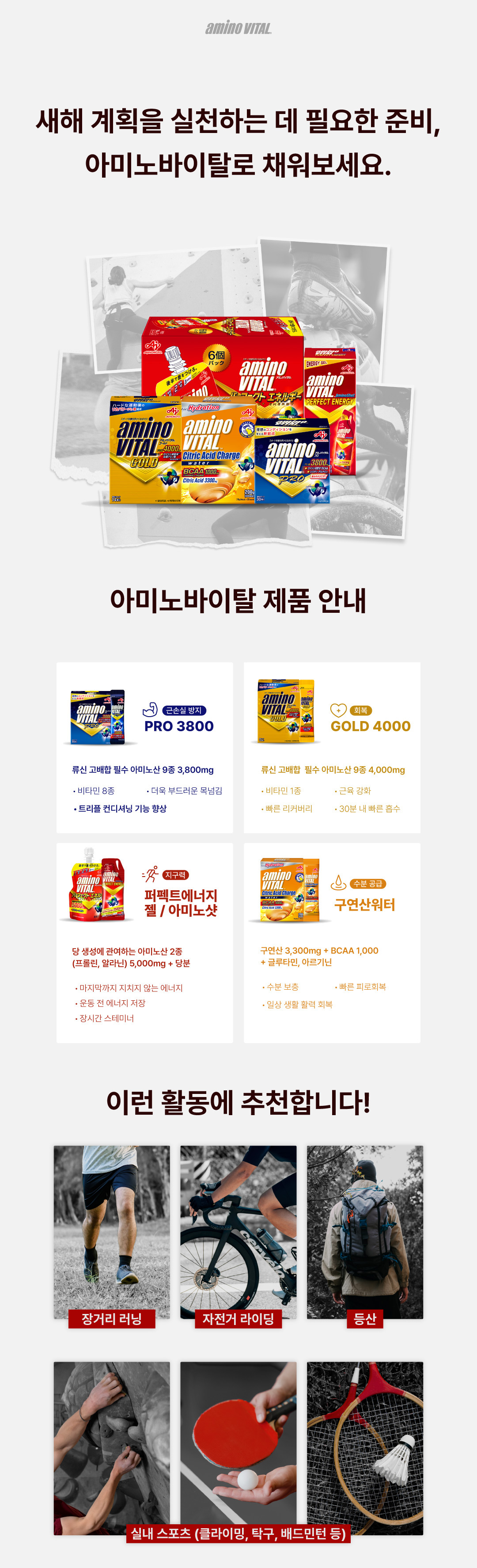 스포츠 영양 보충제 전문 브랜드 아미노바이탈(Amino Vital)이 2026년 새해를 맞아 운동 동호인들의 퍼포먼스 향상과 컨디셔닝을 지원하기 위한 '새해. 다시. 달린다!' 신년 프로모션을 전격 실시한다.