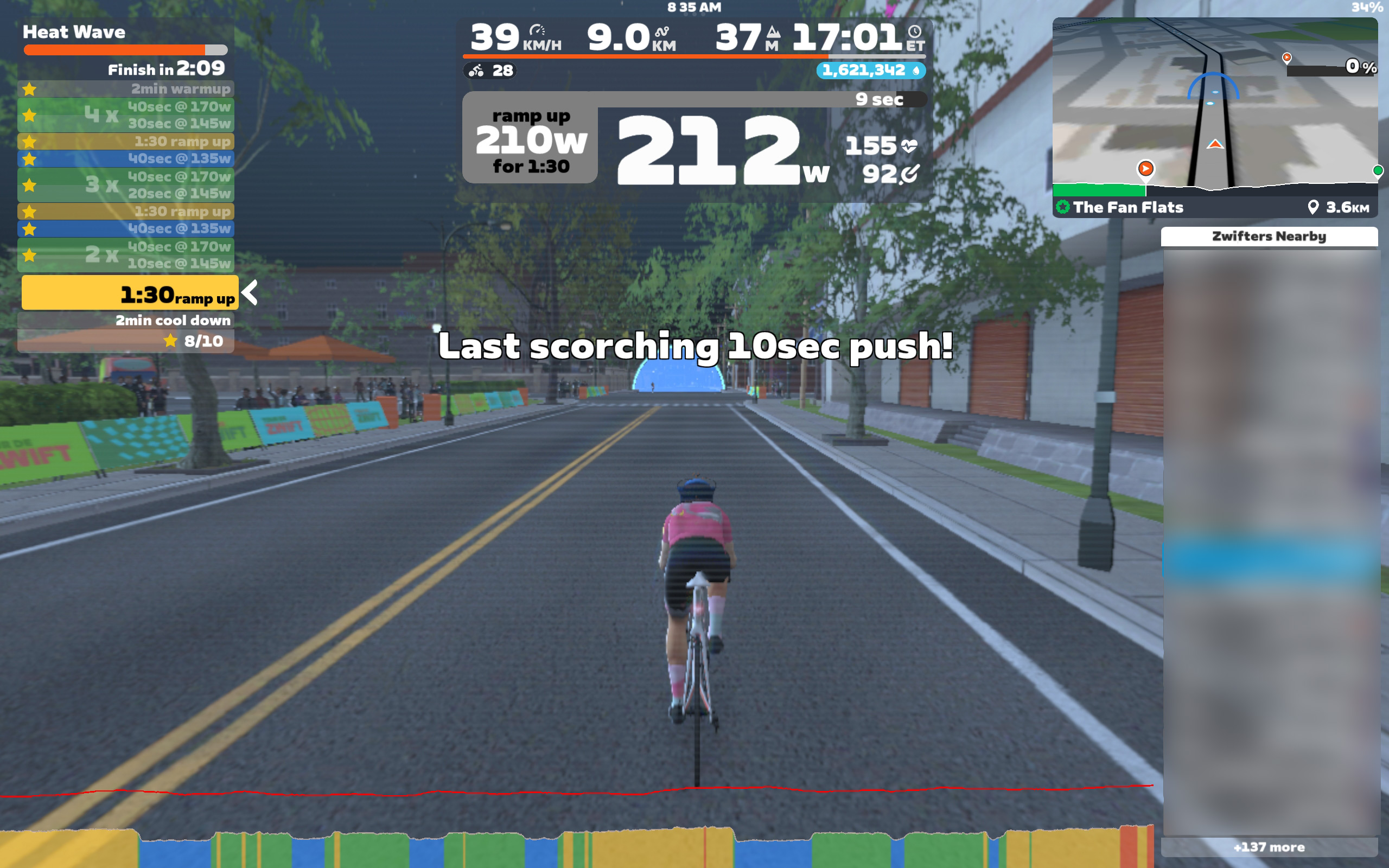 즈위프트에서 Controls 장비 페어링으로 즈위프트 클릭 연결. 클릭 버튼을 누르면 화면에 표시된다.