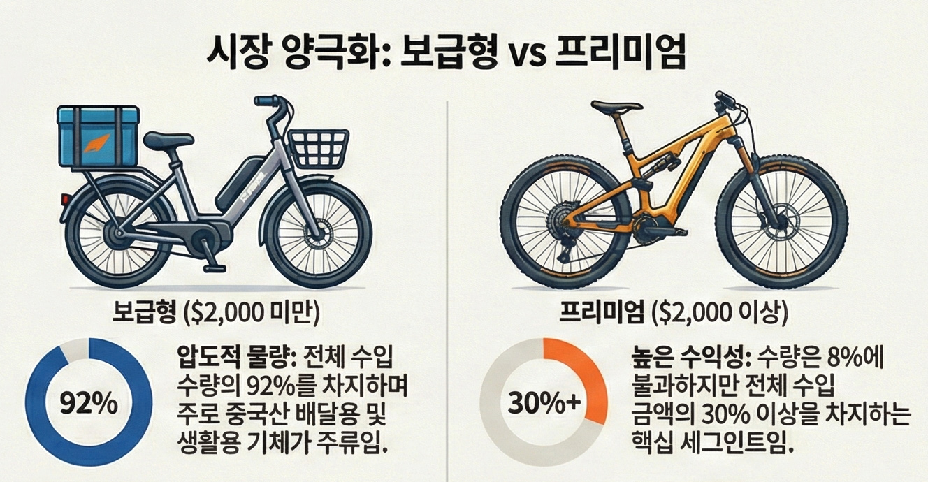 프리미엄 전기자전거도 수입 금액이 빠르게 상승 중이다.