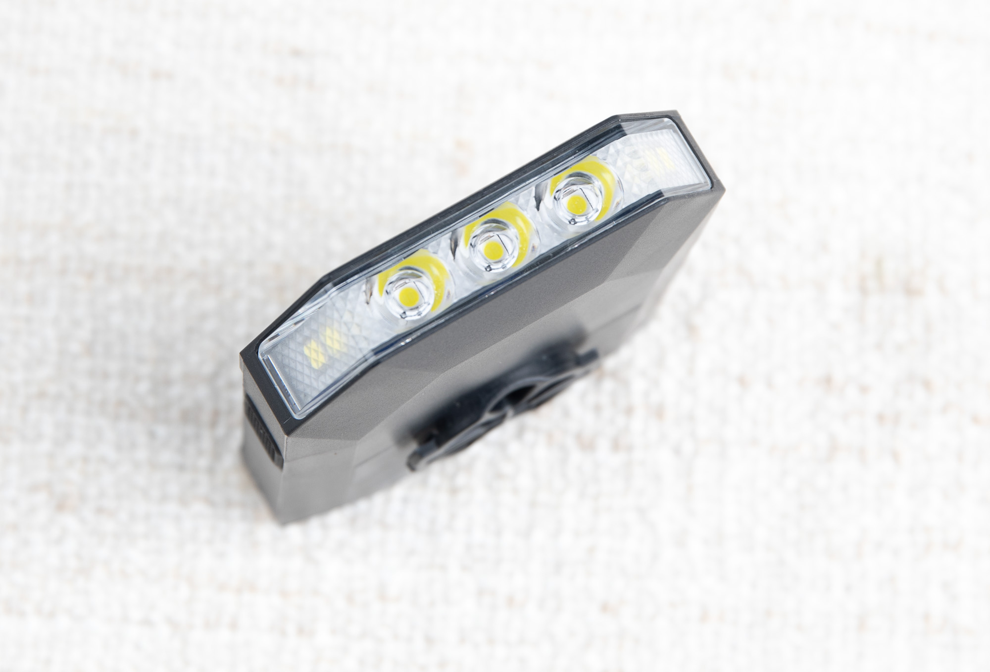 일반 도로에서 주행 시 충분한 수준의 밝기를 제공하면서, 좌우 측면 라이트가 있어서 측면 시인성까지 확보해 준다. 게다가 4가지 모드로 밝기를 조절할 수 있어서, 12시간 이상 최대 45시간까지 전조등 역할을 수행한다.