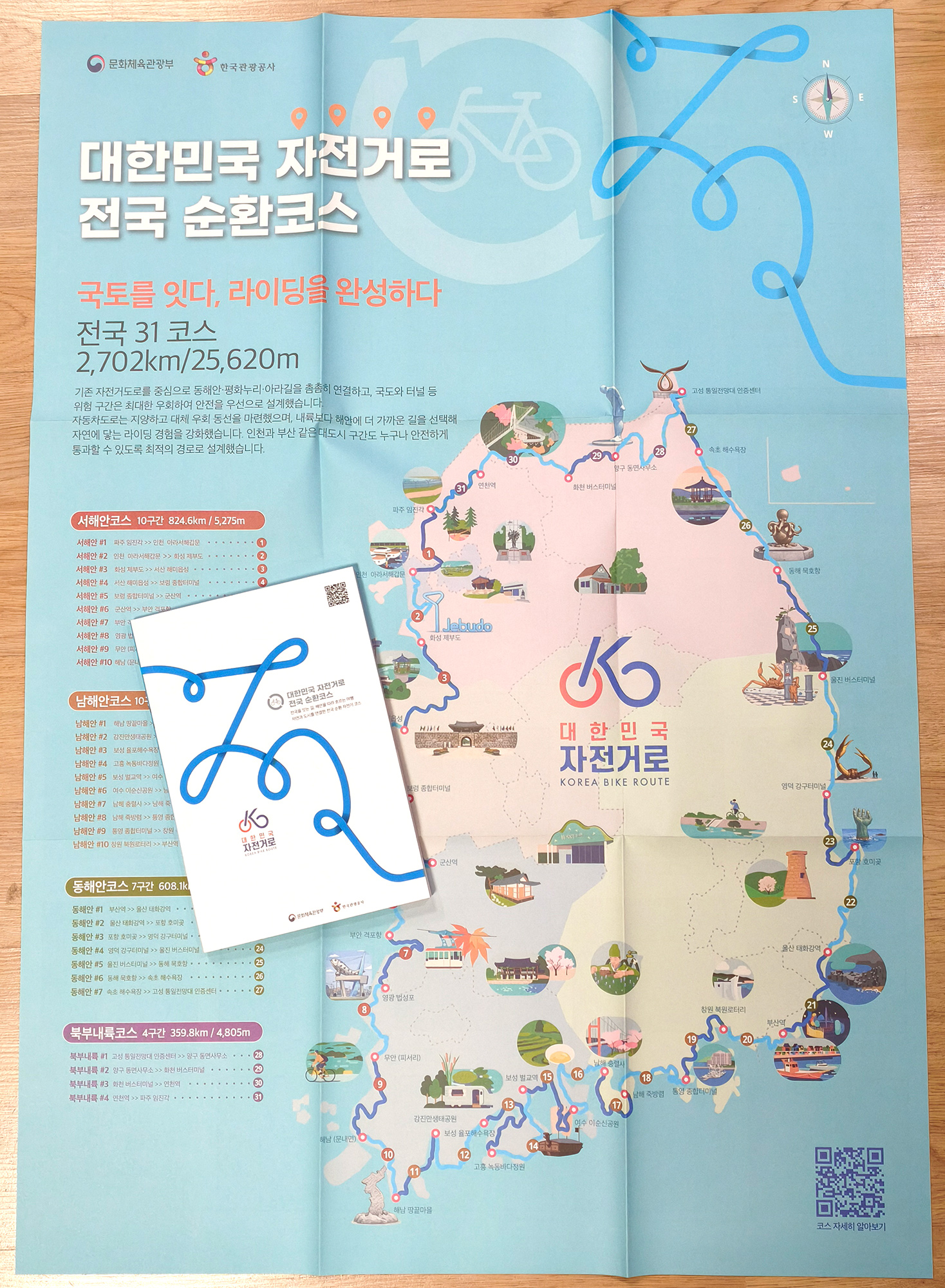 대한민국 자전거로 순환코스의 가이드 책자와 지도 리플릿이 공개되었다.