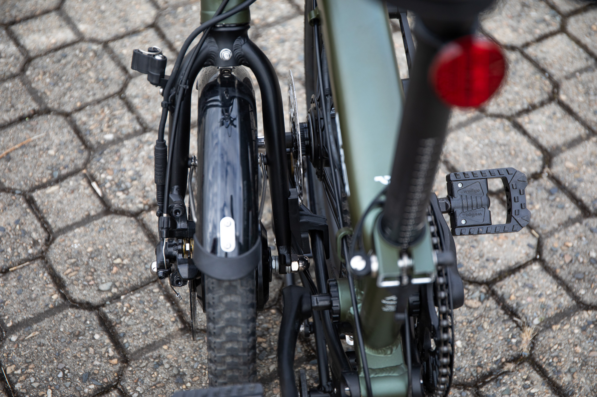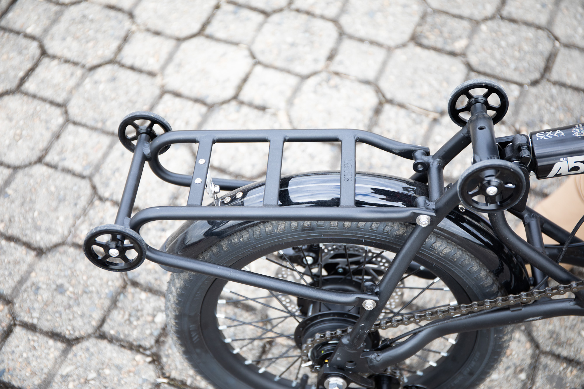 폴딩 시 이동하기 편하게 설치된 리어랙의 바퀴도 사용성이 좋았다. 절반만 폴딩한 상태에서 마치 카트를 밀듯이 자전거를 이동할 수 있었고, 라이딩 중에는 짐받이로 사용하기에도 충분하다.
