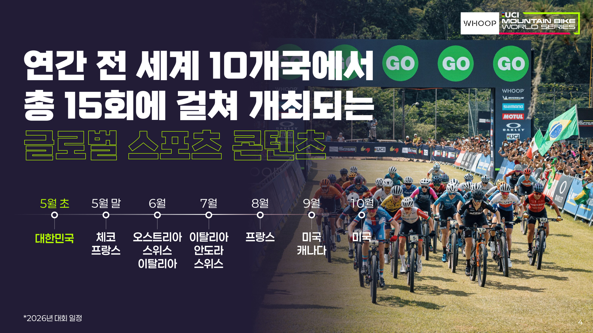 UCI와 워너브라더스 디스커버리(WBD)가 주최하는 이번 시리즈는 한국 개막전을 시작으로 체코, 프랑스, 오스트리아, 스위스, 미국 등 전 세계 10개국에서 총 15회에 걸쳐 진행된다.