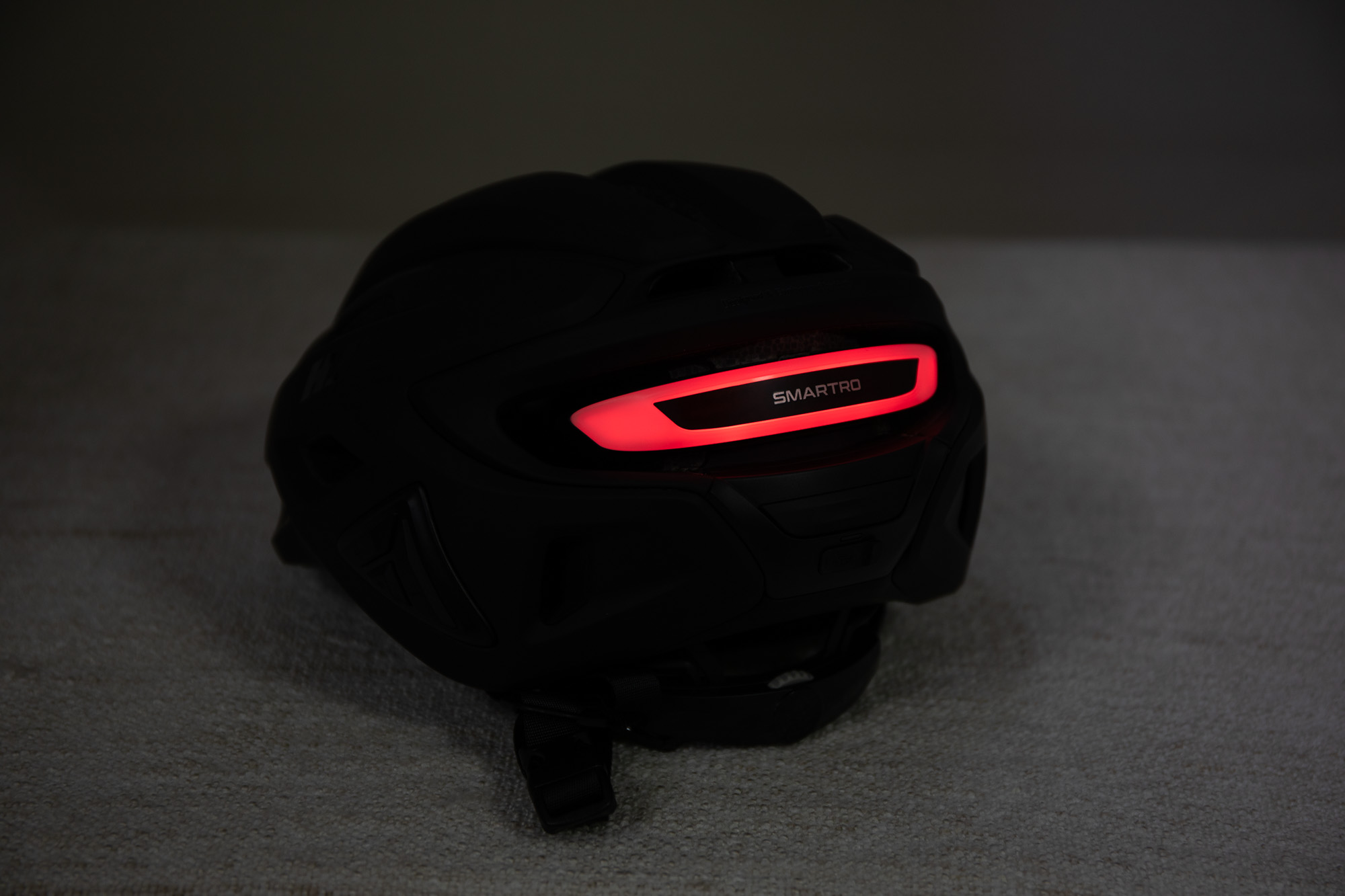 스마트로는 헬멧 후면부에 LED 후미등을 기본 탑재하여 이 부분을 스마트하게 해결했다. 헬멧에서 빛나는 LED 라이트는 뒤따르는 차량 운전자들의 눈높이와 거의 일치하여 탁월한 가시성을 발휘한다.
