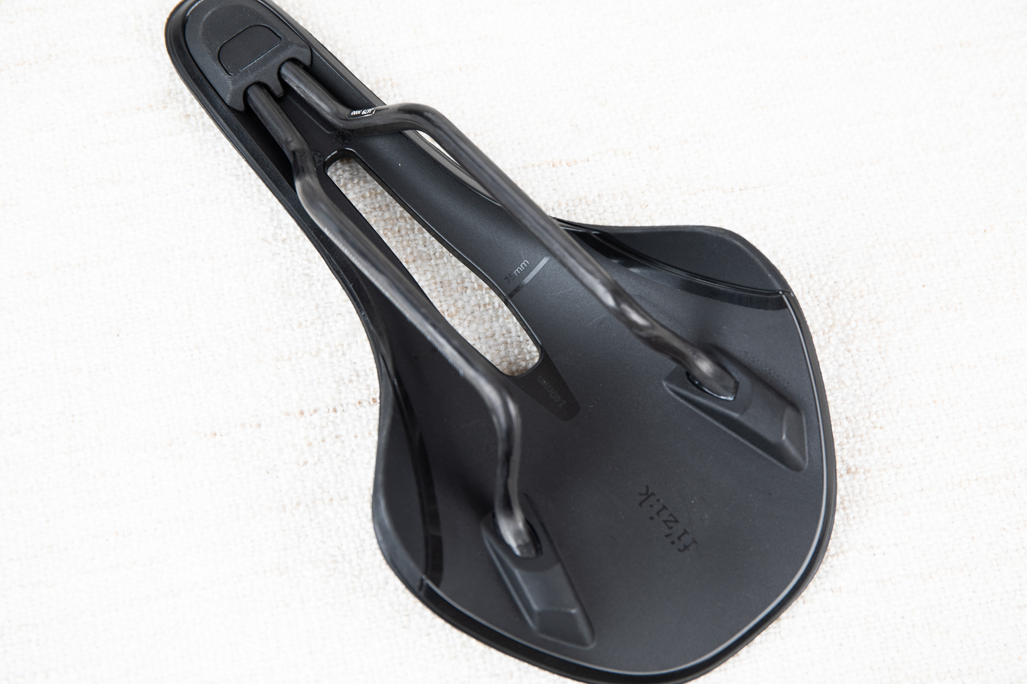 플랫폼의 하부 구조를 지탱하며 자전거의 시트포스트와 결합하는 부위에는 초강성 브레이디드 카본 레일(Braided Carbon Rails)이 적용되었다. 스틸이나 티타늄(K:ium) 레일을 사용하는 하위 등급의 모델들과 달리, R1 Light의 카본 레일은 안장 전체의 총중량을 획기적으로 낮추는 동시에 반응성을 극대화하는 핵심 골격이다.