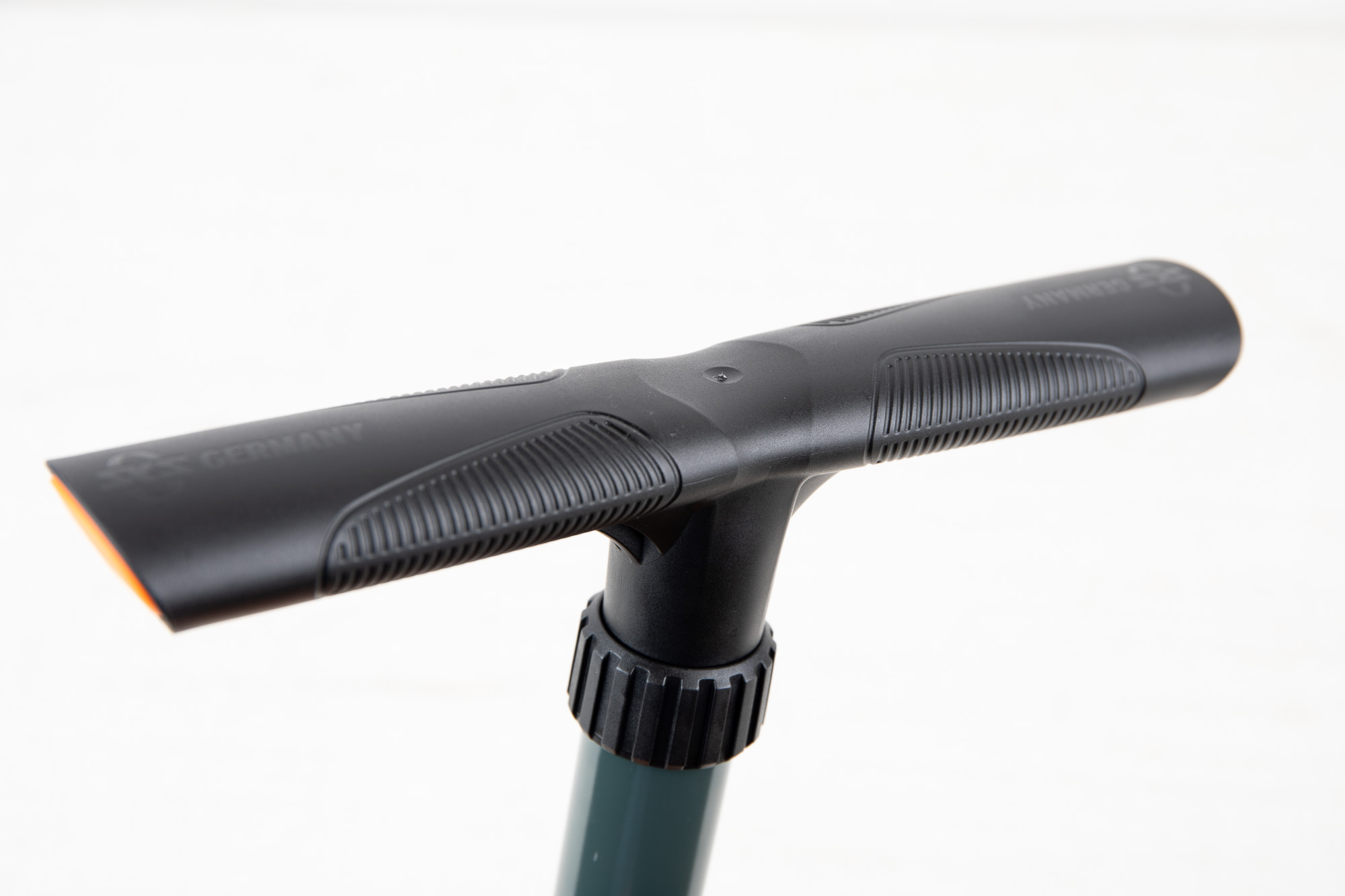 펌프의 하단부는 묵직한 강철 튜브의 무게를 효과적으로 분산시키고 펌핑 시의 안정감을 확보하기 위해, 넓고 튼튼한 강화 플라스틱 베이스를 채택했다. 전체가 묵직한 금속으로 된 상위 모델보다는 체중을 실었을 때 안정감이 덜 하기는 하지만, 실내외에서 일반적인 정비용으로 사용하기에는 전혀 흔들림 없는 우수한 접지력을 제공한다.