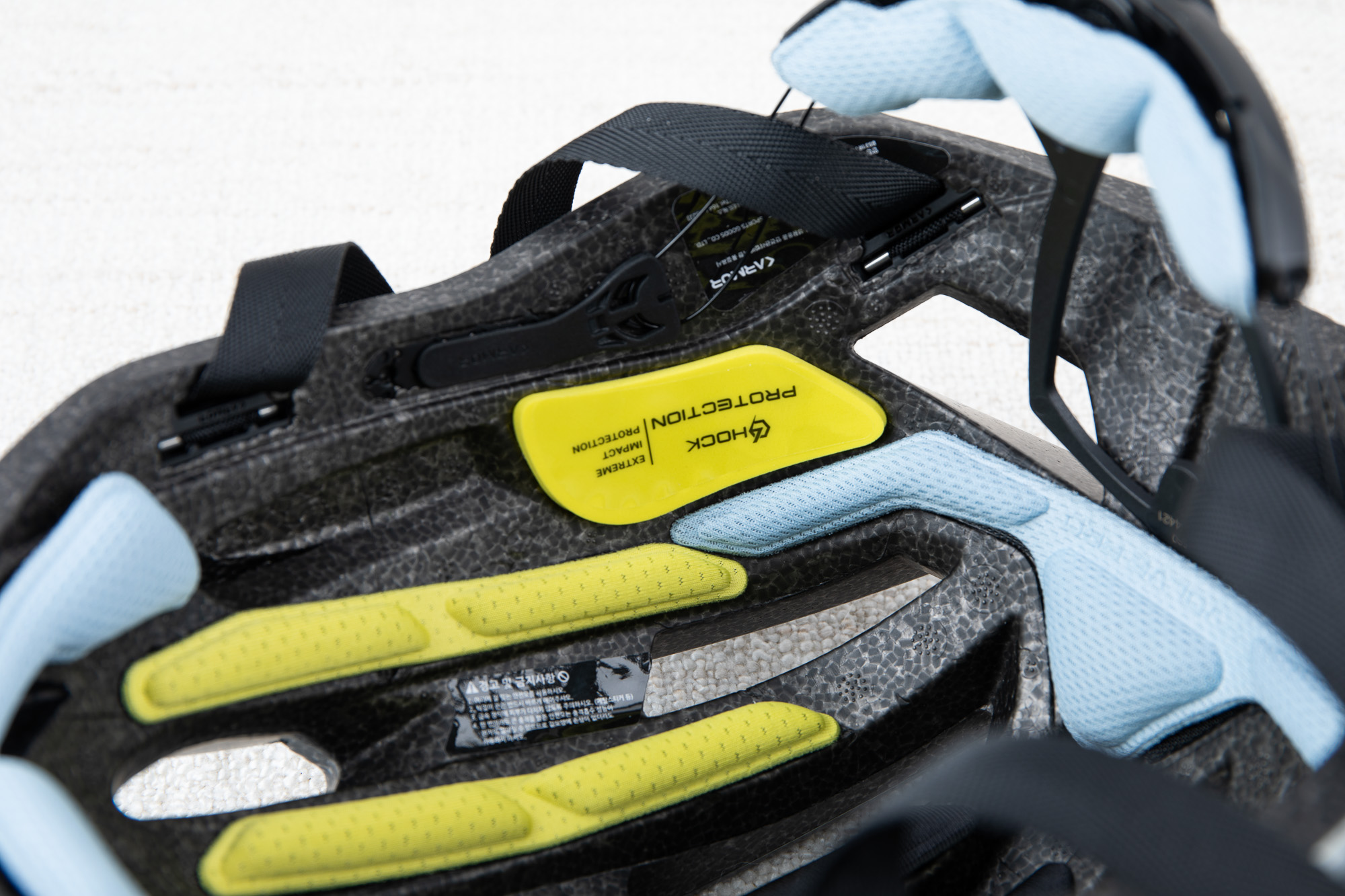 3가지 색상에 따라 다른 쿠션감을 제공하는 패드로 구성되어는데, 앞과 뒤를 담당하는 하늘색 패드는 부드러운 메모리폼과 같은 느낌을 준다. 그리고, 정수리 좌우를 담당하는 노란색 패드는 조금 더 단단한 밀도로 오랜 착용에도 무너지지 않고 공기 채널의 공간을 유지하고 있다. 마지막, 검정색 패드는 정수리에 위치해 있는데, 가장 부드러운 쿠션으로 편안하게 헬멧을 지지하는 역할을 한다.
