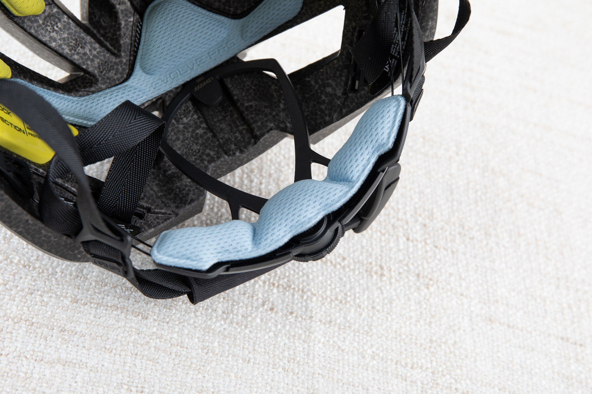 특히, 하늘색의 이볼브 패드는 두께와 밀도를 통해 안정감을 높여주는데, 핏 다이얼을 강하게 조이지 않아도 헬멧이 흔들리지 않게 고정해주는 역할을 했다.