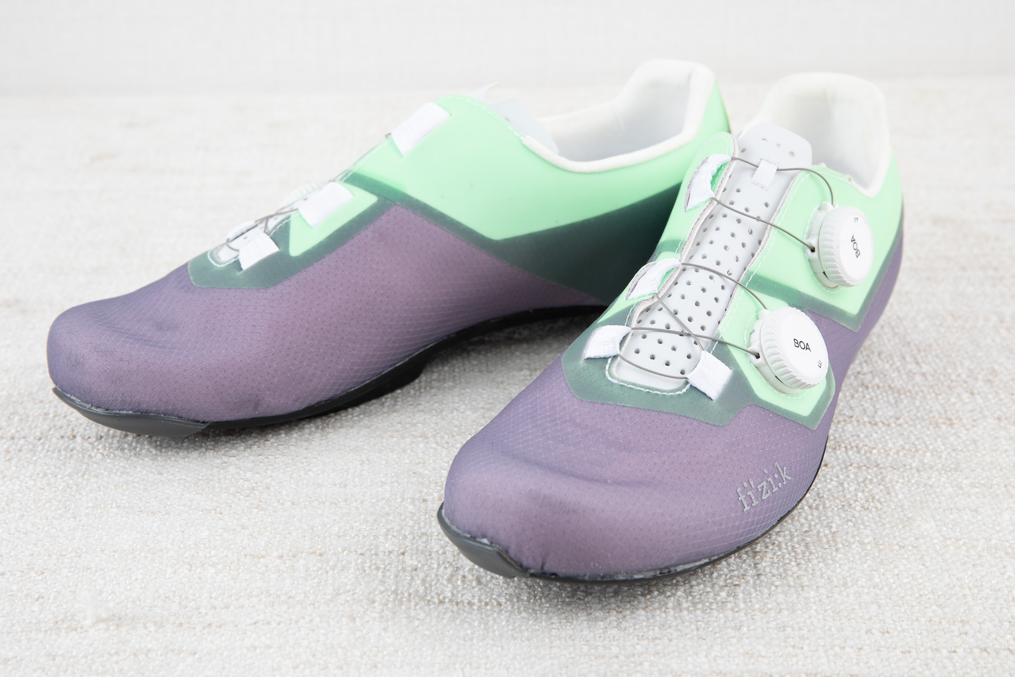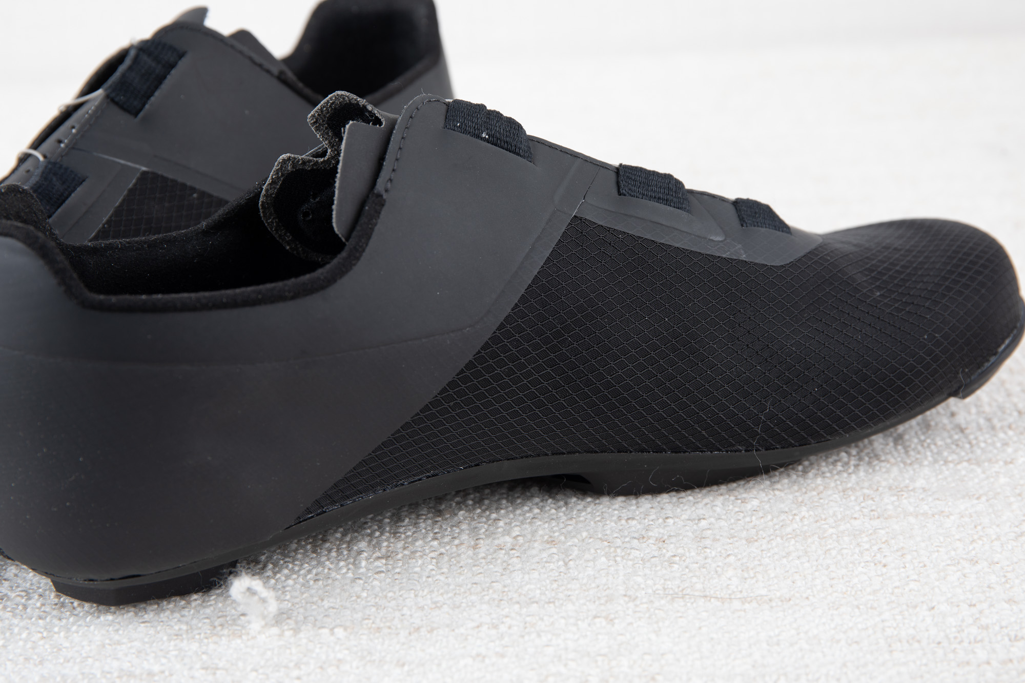 이 소재는 발의 굴곡에 맞춰 부드럽게 늘어나며, 공기 순환 성능이 높아 신발 내부의 열기와 땀을 신속하게 배출한다. 페달을 당길 때 갑피가 늘어나는 것을 잡아주기 위해 폴리우레탄(PU) 라미네이트를 부분적으로 덧대어 내구성과 지지력도 놓치지 않았다.
