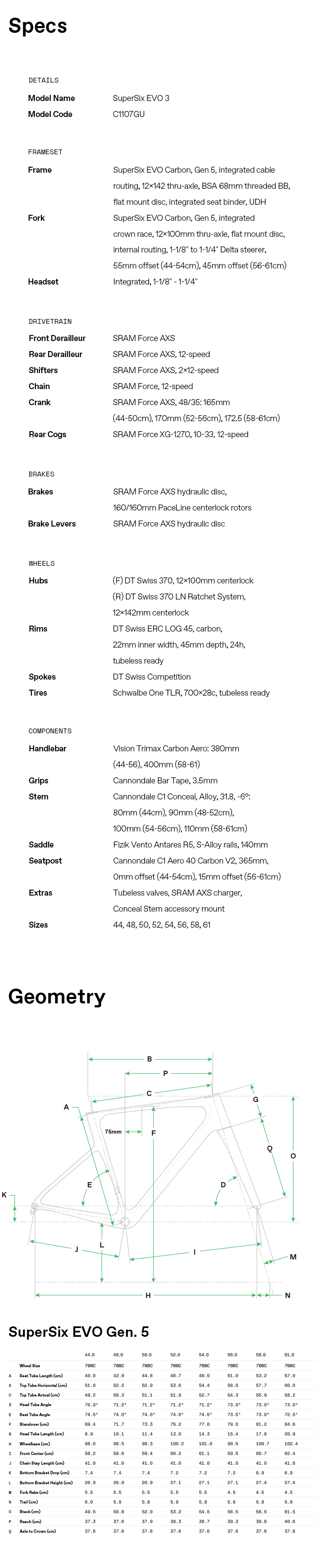 캐논데일 슈퍼식스 에보 3 스램 포스, 50 사이즈