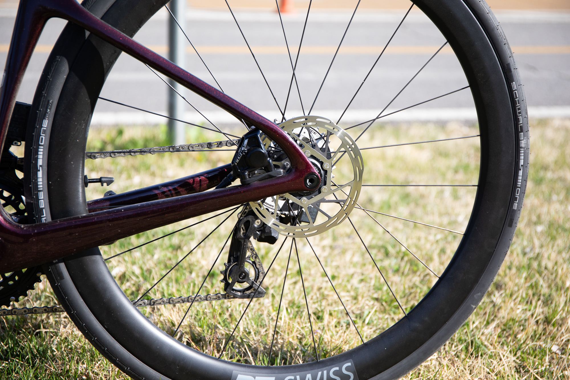 타이어 클리어런스는 4세대 대비 확장되어 실측 기준 최대 32mm(각 측면 4mm 필수 여유 공간 포함)의 타이어를 공식적으로 수용할 수 있게 되었으며, 실사용 환경에서는 림 내측 폭에 따라 최대 35mm까지도 장착이 가능하도록 설계되어 광폭 타이어의 공기역학 및 구름 저항 이점을 적극 수용할 수 있게 되었다.